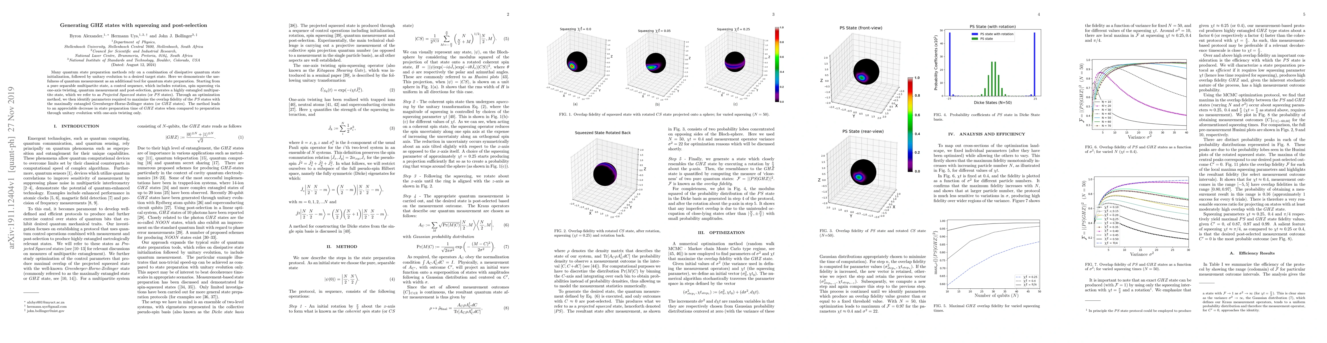 Researchers demonstrate a new method to generate GHZ states using squeezing and post-selection, reducing state preparation time compared to traditional methods.