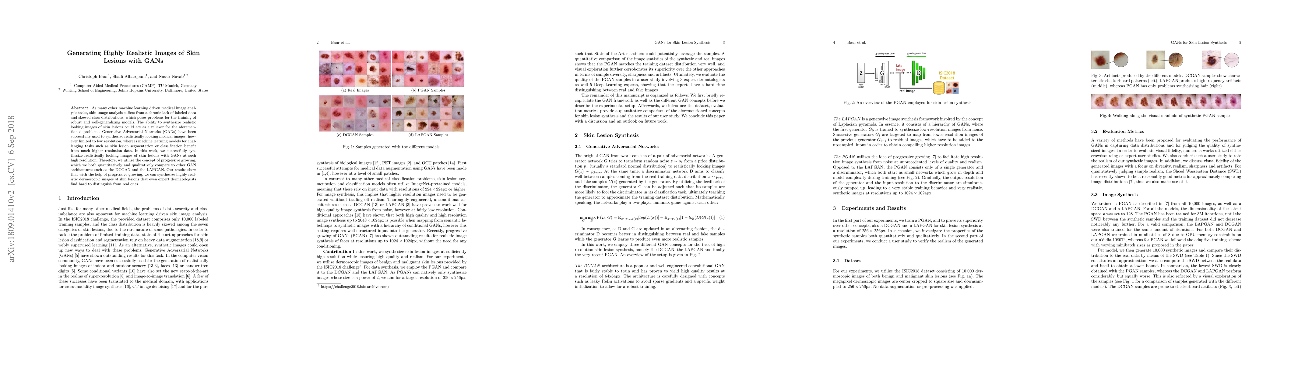 This paper presents a method using Generative Adversarial Networks (GANs) with progressive growing to synthesize highly realistic high-resolution images of skin lesions, addressing the issue of limited labeled data in medical image analysis. The results demonstrate that the generated images are indistinguishable from real ones even by expert dermatologists.
