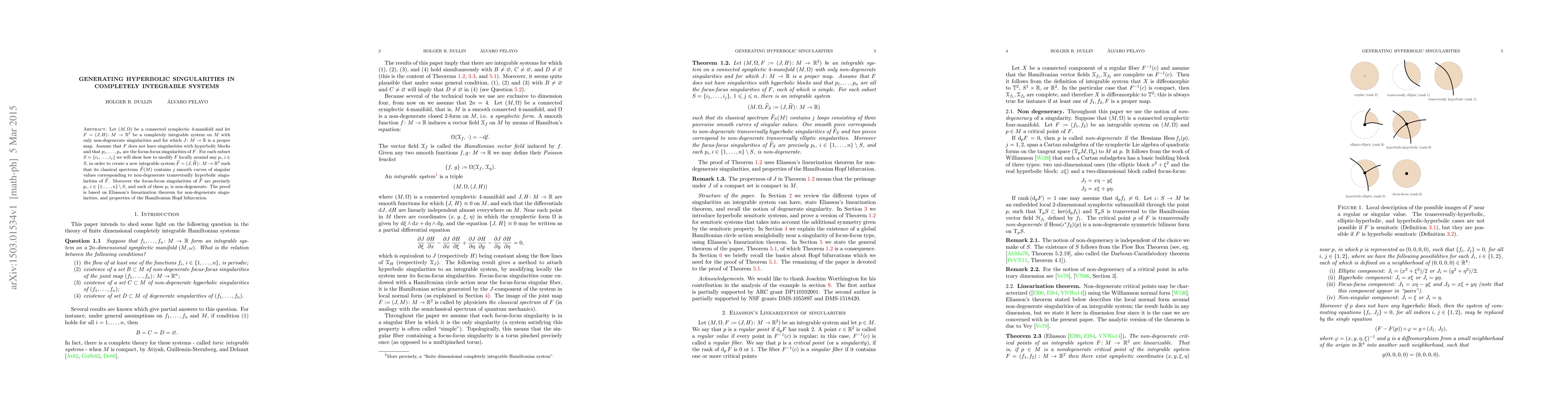 This paper explores the generation of hyperbolic singularities in completely integrable systems by modifying a given integrable system locally around its focus-focus singularities. The new system retains the original singularities except for a subset, introducing $j$ smooth curves of transversally hyperbolic singularities, thereby enriching the classical spectrum. The methodology leverages Eliasson's linearization theorem and Hamiltonian Hopf bifurcation.