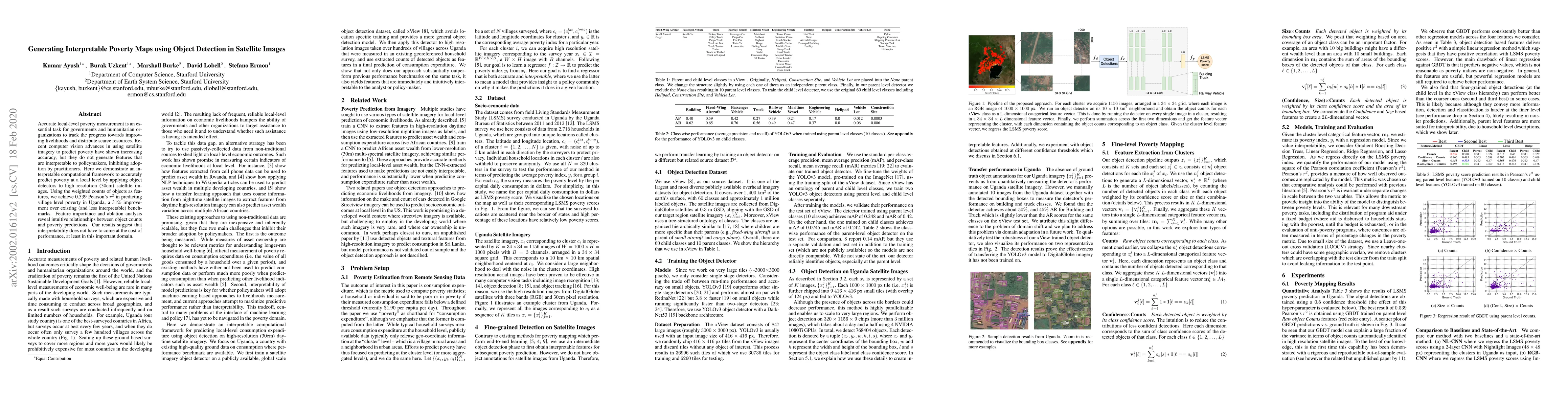This paper presents an interpretable framework for predicting village-level poverty in Uganda using object detection in high-resolution satellite images, achieving a 31% improvement over existing benchmarks. The method leverages interpretable object counts as features, demonstrating that high accuracy and interpretability can coexist.