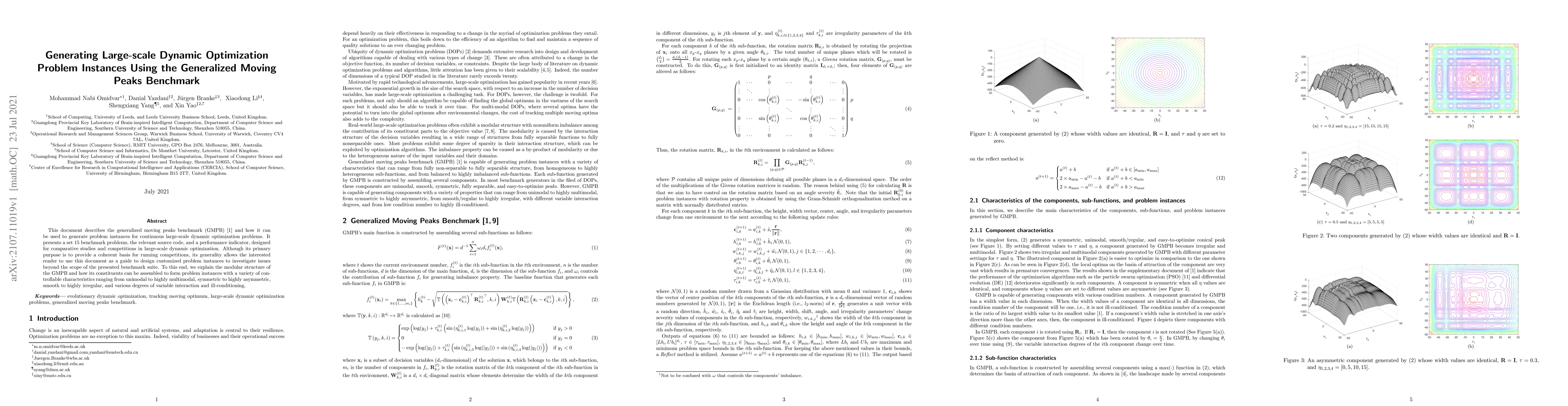 This paper introduces the generalized moving peaks benchmark (GMPB) to generate large-scale dynamic optimization problem instances, featuring 15 benchmarks, source code, and a performance indicator. It explains the modular structure of GMPB, allowing customization for various optimization characteristics and applications.
