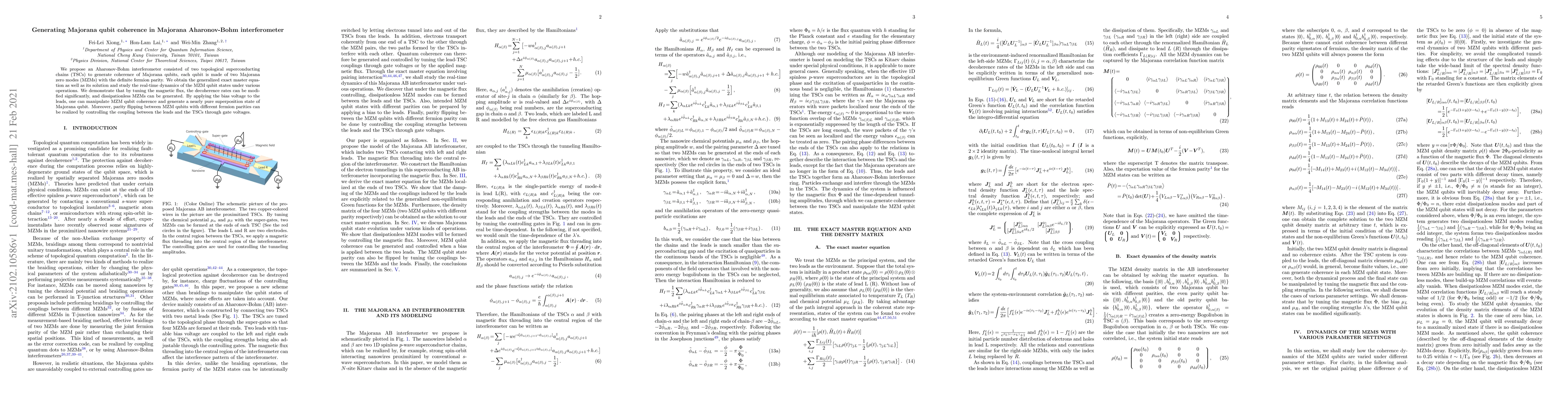 This paper proposes an Aharonov-Bohm interferometer using two topological superconducting chains to generate and manipulate coherence in Majorana qubits, composed of Majorana zero modes. By tuning magnetic flux and applying bias voltages, the researchers demonstrate significant control over decoherence rates and achieve nearly pure superposition states.