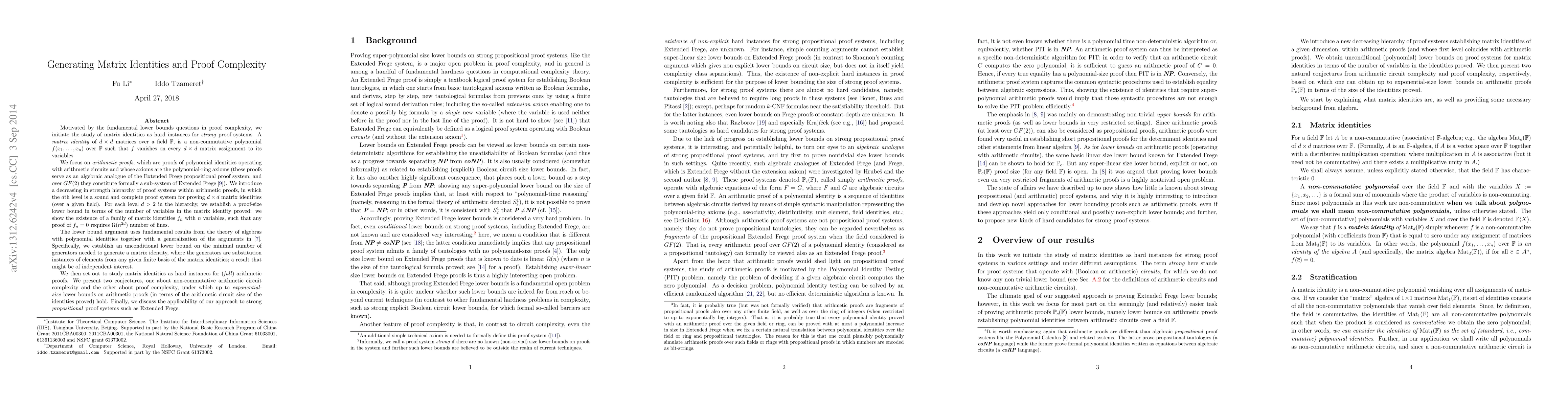 This paper explores the use of matrix identities as challenging instances for strong proof systems in proof complexity, establishing a hierarchy of arithmetic proof systems for proving such identities. It proves a lower bound on proof size for these identities and proposes conjectures suggesting exponential-size lower bounds for arithmetic proofs.