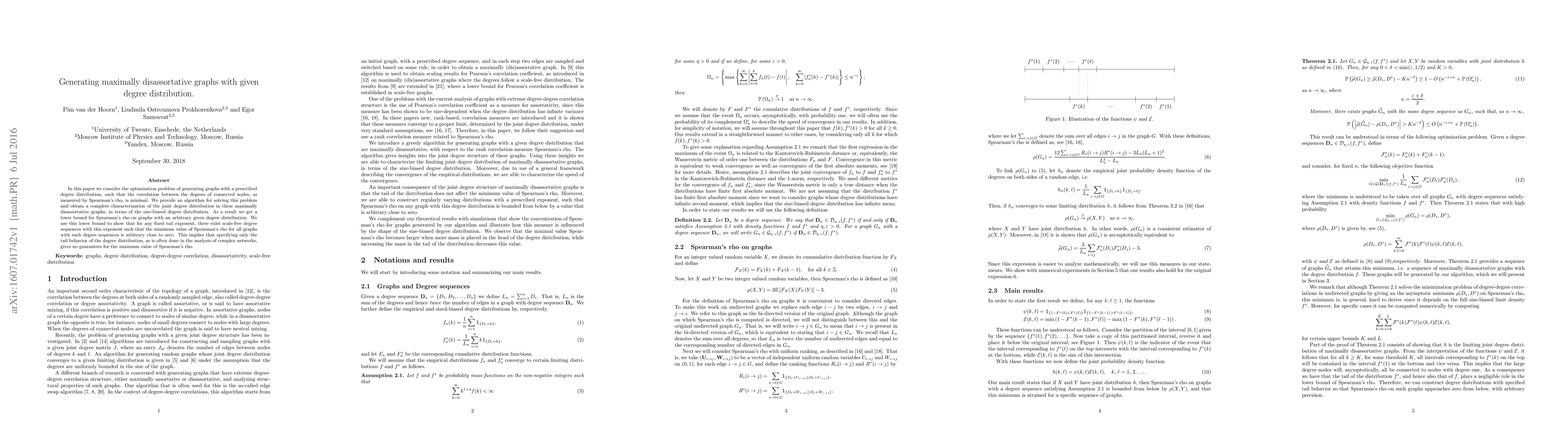 This paper develops an algorithm to generate maximally disassortative graphs with a given degree distribution, minimizing the correlation between connected nodes. It provides a complete characterization of the joint degree distribution and establishes a lower bound for Spearman's rho, demonstrating that specifying only the tail behavior of the degree distribution does not guarantee low correlation.