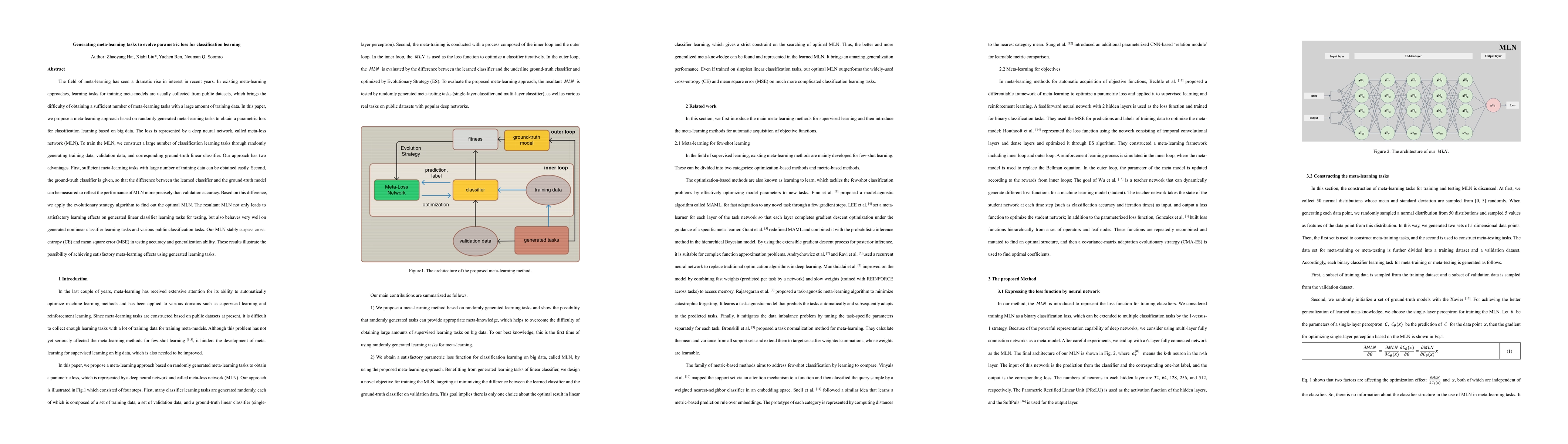 This paper proposes a meta-learning approach that generates numerous tasks to train a meta-loss network (MLN) for classification learning. The MLN outperforms traditional losses like cross-entropy and mean square error, demonstrating effective learning from both linear and nonlinear classifiers, as well as on various public datasets.
