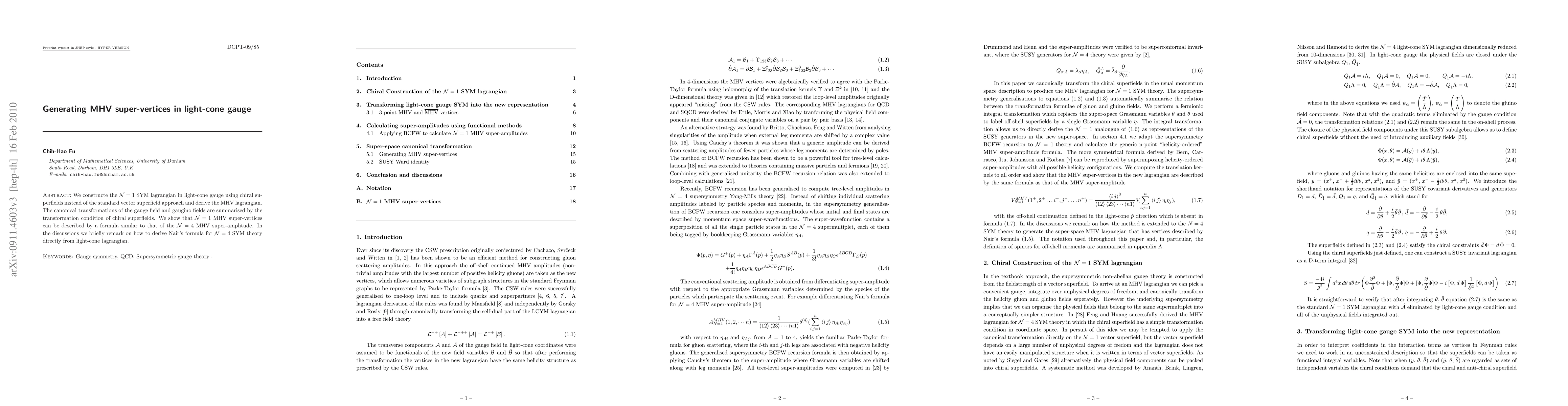 We constructe the $\mathcal{N}=1$ SYM lagrangian in light-cone gauge using chiral superfields instead of the standard vector superfield approach and derive the MHV lagrangian. The canonical transformations of the gauge field and gaugino fields are summarised by the transformation condition of chiral superfields. We show that $\mathcal{N}=1$ MHV super-vertices can be described by a formula similar to that of the $\mathcal{N}=4$ MHV super-amplitude. In the discussions we briefly remark on how to derive Nair's formula for $\mathcal{N}=4$ SYM theory directly from light-cone lagrangian.
