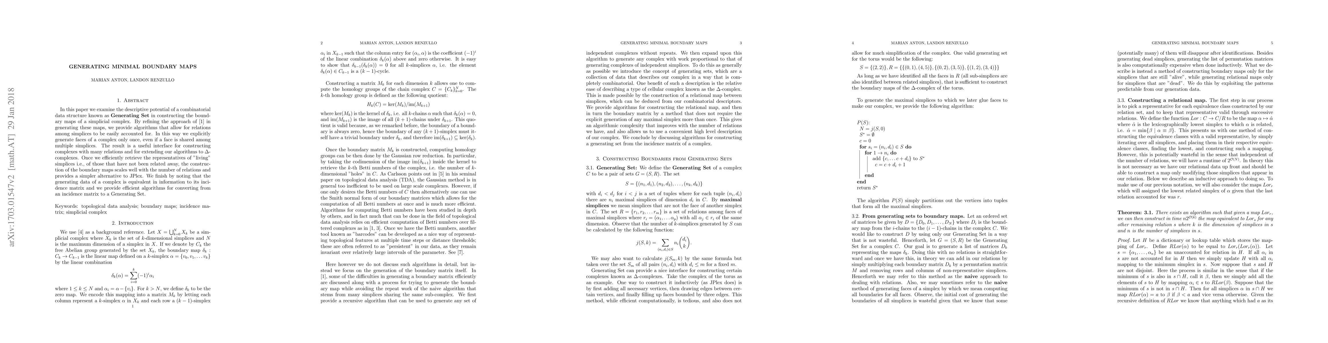 In this paper we examine the descriptive potential of a combinatorial data structure known as "Generating Set" in constructing the boundary maps of a simplicial complex. By refining the approach of \cite{Dumas} in generating these maps, we provide algorithms that allow for relations among simplices to be easily accounted for. In this way we explicitly generate faces of a complex only once, even if a face is shared among multiple simplices. The result is a useful interface for constructing complexes with many relations and for extending our algorithms to $\Delta$-complexes. Once we efficiently retrieve the representatives of "living" simplices i.e., of those that have not been related away, the construction of the boundary maps scales well with the number of relations and provides a simpler alternative to JPlex. We finish by noting that the generating data of a complex is equivalent in information to its incidence matrix and we provide efficient algorithms for converting from an incidence matrix to a Generating Set.