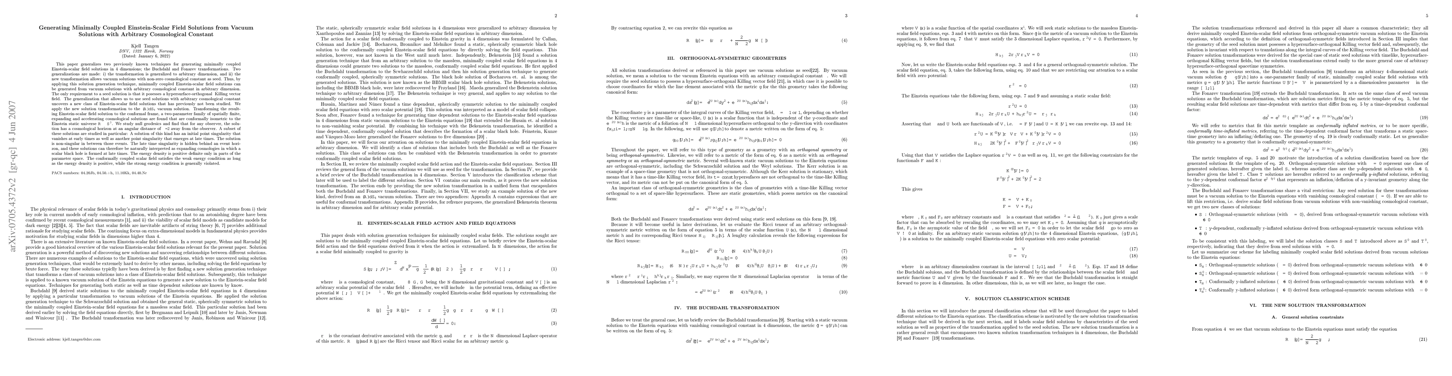 This paper generalizes techniques to generate minimally coupled Einstein-scalar field solutions from vacuum solutions with arbitrary cosmological constants, revealing a new class of solutions. It finds two-parameter families of spatially finite, expanding and accelerating cosmological solutions conformally isometric to the Einstein static universe.