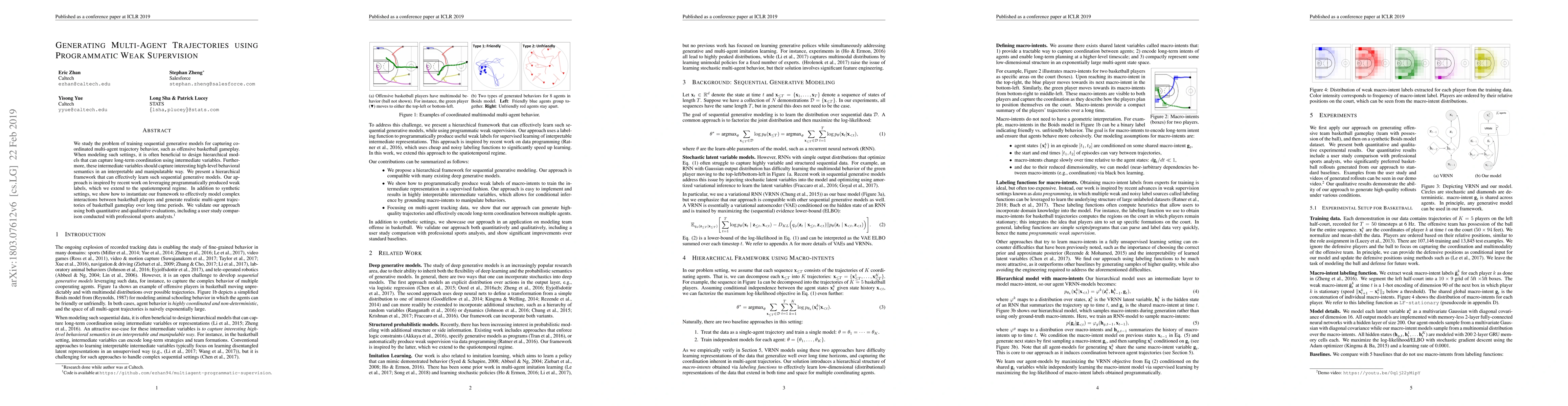 This research paper presents a hierarchical framework for generating multi-agent trajectories using programmatic weak supervision, effectively modeling complex interactions in basketball gameplay and generating realistic player movements.