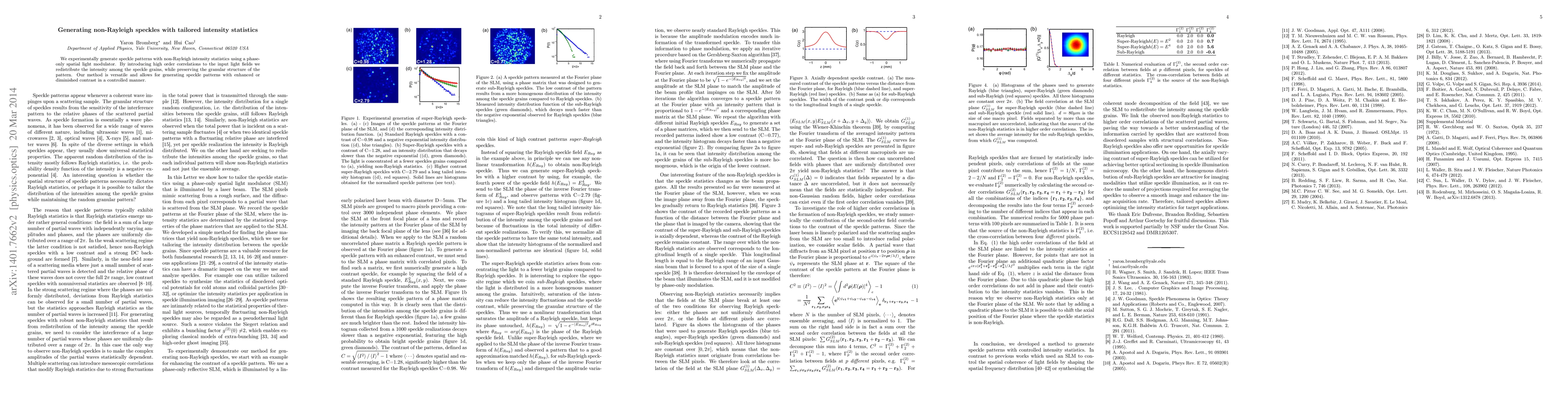 This paper presents an experimental method for generating speckle patterns with non-Rayleigh intensity statistics using a phase-only spatial light modulator, allowing for high-order correlation-induced redistribution of intensity while maintaining the granular structure. The technique enables controlled enhancement or reduction of speckle contrast.