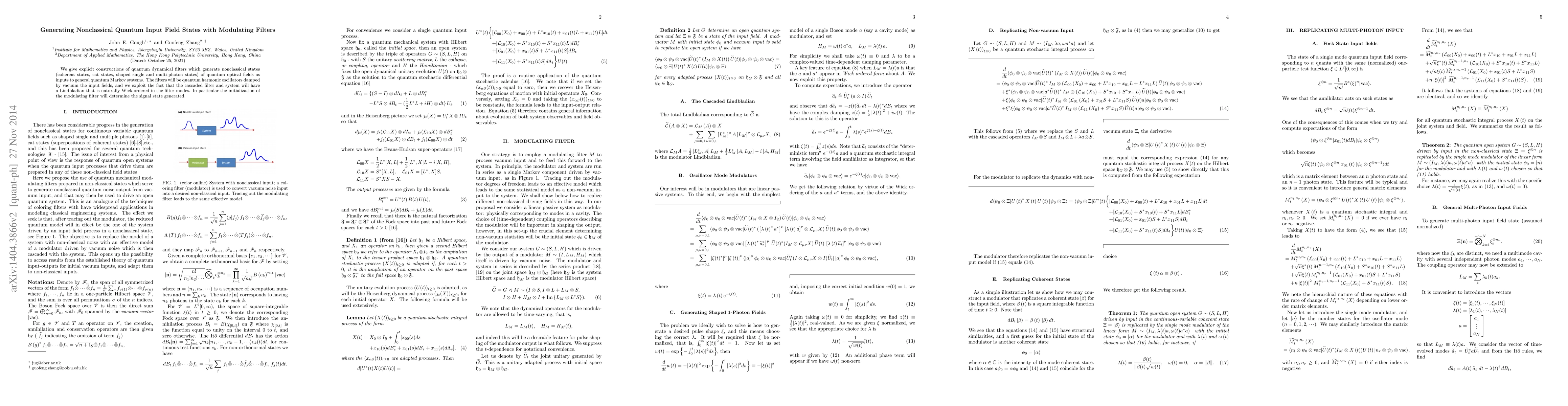 This paper proposes a method to generate nonclassical quantum input field states using modulating filters, enabling the transformation of vacuum noise into coherent, cat, and shaped photon states. The filters transfer specific nonclassical features to the output field, and the dynamics of the quantum system driven by these inputs mirror the combined filter-system model with vacuum inputs.
