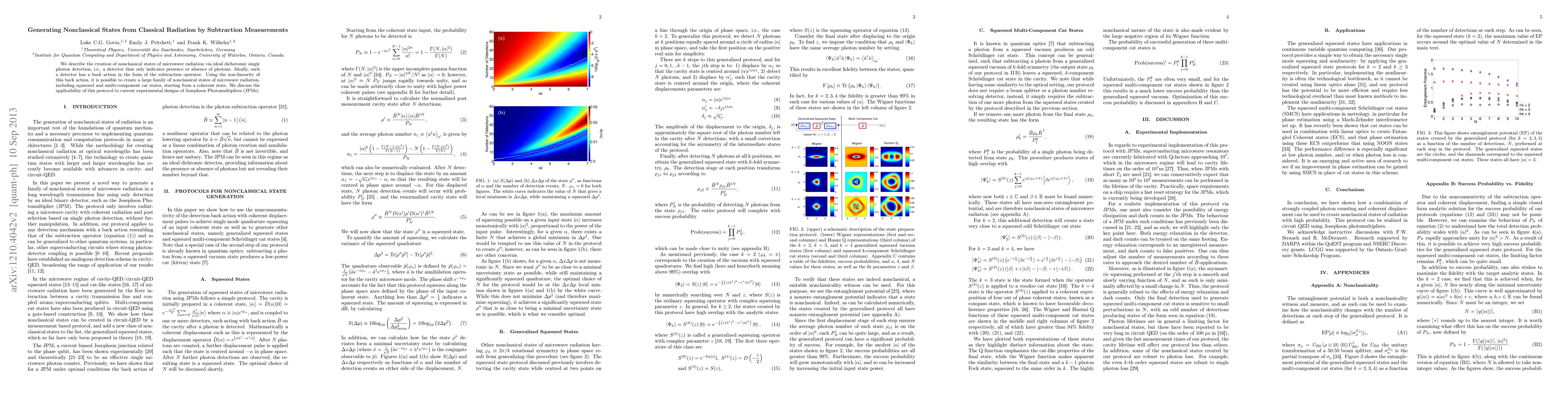 This paper details the generation of nonclassical microwave radiation states through ideal dichotomic single photon detection, leveraging the back action of the subtraction operator. It explores the creation of squeezed and multi-component cat states from a coherent state and assesses the protocol's feasibility with current Josephson Photomultipliers.