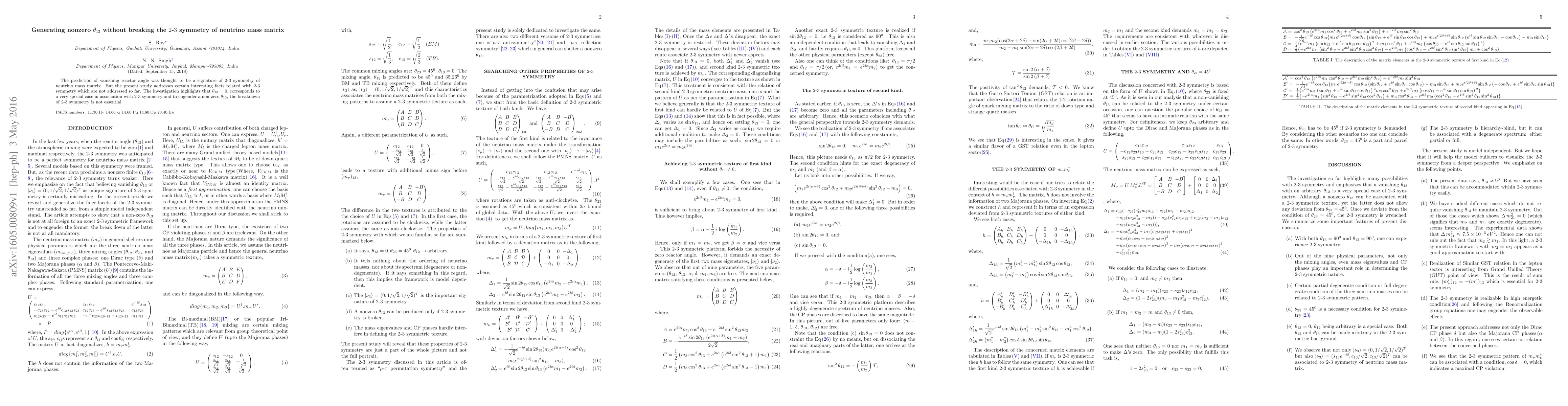 The prediction of vanishing reactor angle was thought to be a signature of $2$-$3$ symmetry of neutrino mass matrix. But the present study addresses certain interesting facts related with $2$-$3$ symmetry which are not addressed so far. The investigation highlights that $\theta_{13}=0$, corresponds to a very special case in association with $2$-$3$ symmetry and to engender a non-zero $\theta_{13}$, the breakdown of $2$-$3$ symmetry is not essential.
