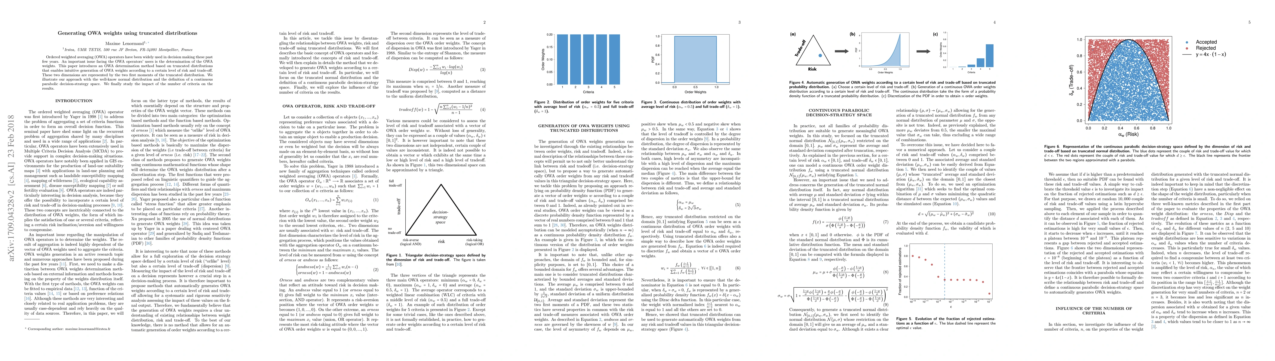 This paper introduces a new method for generating Ordered Weighted Averaging (OWA) weights based on truncated distributions, allowing users to intuitively determine weights according to risk and trade-off levels.