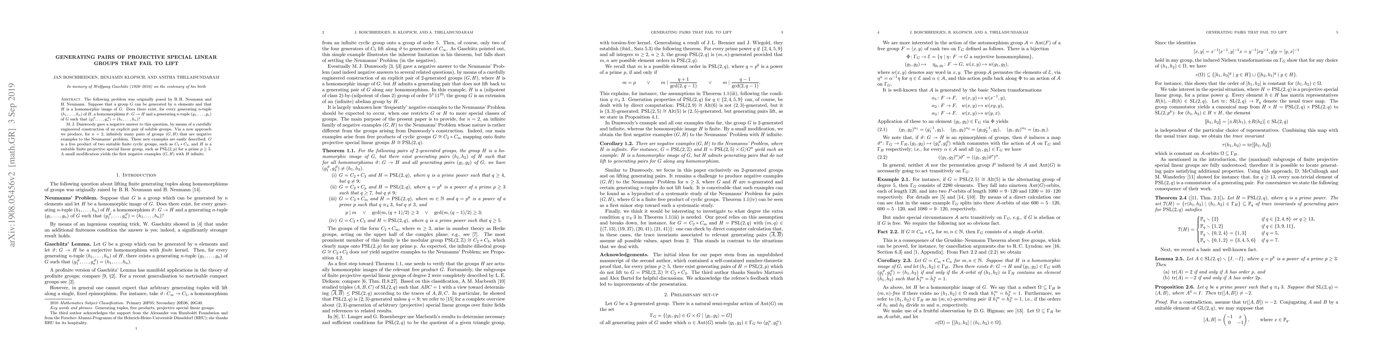 The following problem was originally posed by B.H. Neumann and H. Neumann. Suppose that a group $G$ can be generated by $n$ elements and that $H$ is a homomorphic image of $G$. Does there exist, for every generating $n$-tuple $(h_1,\ldots, h_n)$ of $H$, a homomorphism $\vartheta \colon G \to H$ and a generating $n$-tuple $(g_1,\ldots,g_n)$ of $G$ such that $(g_1^\vartheta,\ldots,g_n^\vartheta) = (h_1,\ldots,h_n)$? M.J. Dunwoody gave a negative answer to this question, by means of a carefully engineered construction of an explicit pair of soluble groups. Via a new approach we produce, for $n = 2$, infinitely many pairs of groups $(G,H)$ that are negative examples to the Neumanns' problem. These new examples are easily described: $G$ is a free product of two suitable finite cyclic groups, such as $C_2 \ast C_3$, and $H$ is a suitable finite projective special linear group, such as $\mathrm{PSL}(2,p)$ for a prime $p \ge 5$. A small modification yields the first negative examples $(G,H)$ with $H$ infinite.