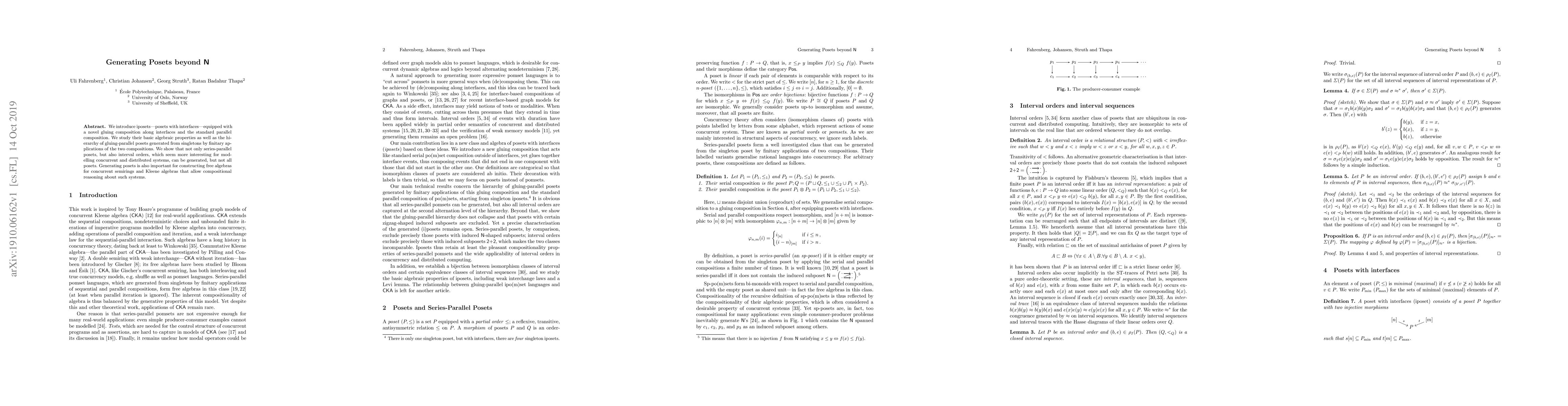 This paper introduces iposets—posets with interfaces—and explores their algebraic properties and generation through gluing and parallel compositions. It demonstrates that while series-parallel posets and interval orders can be generated, not all posets can, and discusses their relevance for constructing free algebras for concurrent systems.