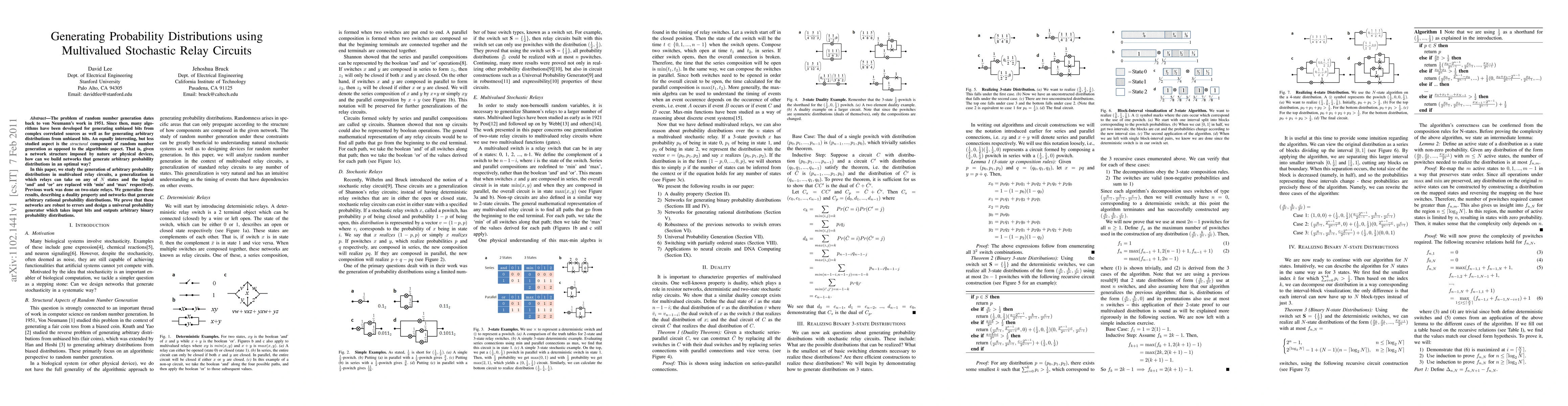 This paper explores the generation of arbitrary probability distributions using multivalued stochastic relay circuits, extending previous work on two-state relays. It introduces a duality property and designs robust networks capable of generating any rational probability distribution, culminating in a universal probability generator.