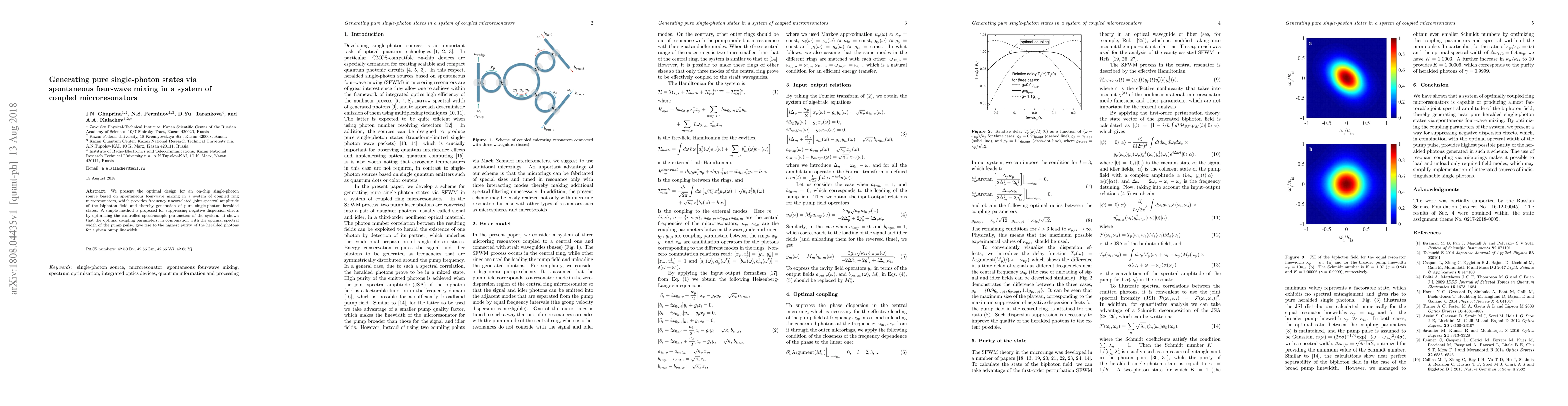 This paper details an on-chip single-photon source using spontaneous four-wave mixing in coupled microresonators, achieving pure single-photon states through frequency uncorrelated biphoton fields. The authors propose a method to suppress negative dispersion effects, demonstrating optimal coupling parameters and spectral width for maximum photon purity.
