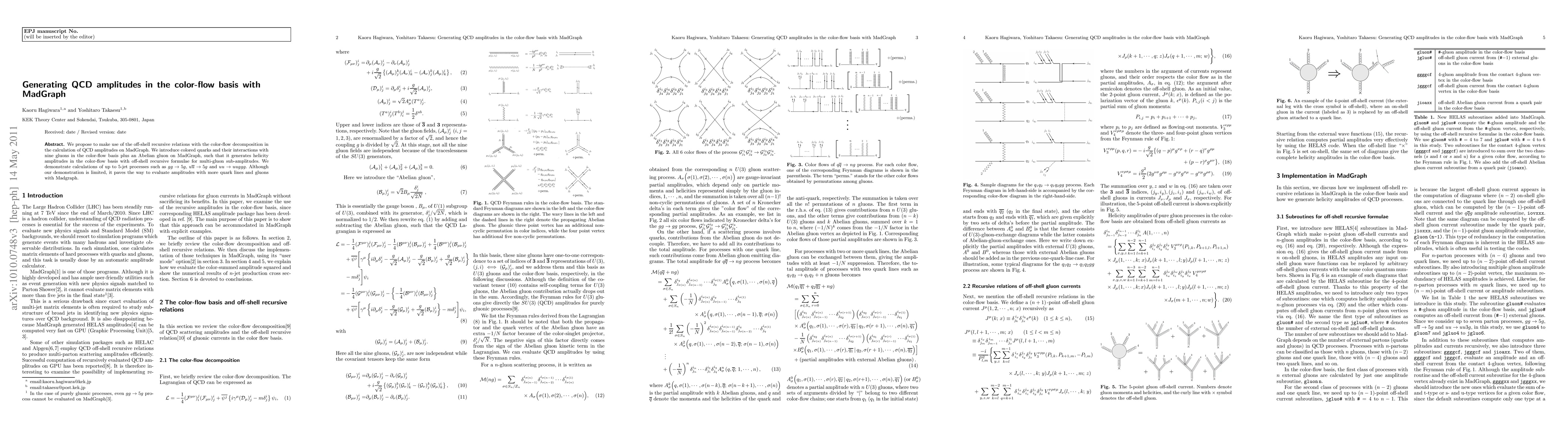 We propose to make use of the off-shell recursive relations with the color-flow decomposition in the calculation of QCD amplitudes on MadGraph. We introduce colored quarks and their interactions with nine gluons in the color-flow basis plus an Abelian gluon on MadGraph, such that it generates helicity amplitudes in the color-flow basis with off-shell recursive formulae for multi-gluon sub-amplitudes. We demonstrate calculations of up to 5-jet processes such as $gg\rightarrow 5g$, $u\bar{u}\rightarrow 5g$ and $uu\rightarrow uuggg$. Although our demonstration is limited, it paves the way to evaluate amplitudes with more quark lines and gluons with Madgraph.