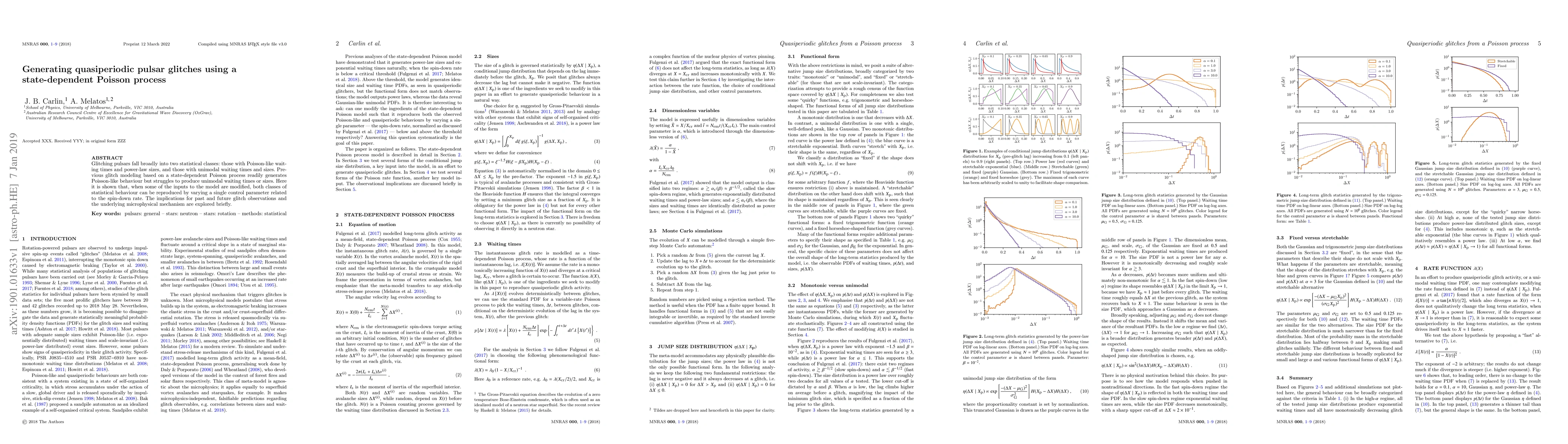 Glitching pulsars fall broadly into two statistical classes: those with Poisson-like waiting times and power-law sizes, and those with unimodal waiting times and sizes. Previous glitch modeling based on a state-dependent Poisson process readily generates Poisson-like behaviour but struggles to produce unimodal waiting times or sizes. Here it is shown that, when some of the inputs to the model are modified, both classes of statistical behaviour can be reproduced by varying a single control parameter related to the spin-down rate. The implications for past and future glitch observations and the underlying microphysical mechanism are explored briefly.