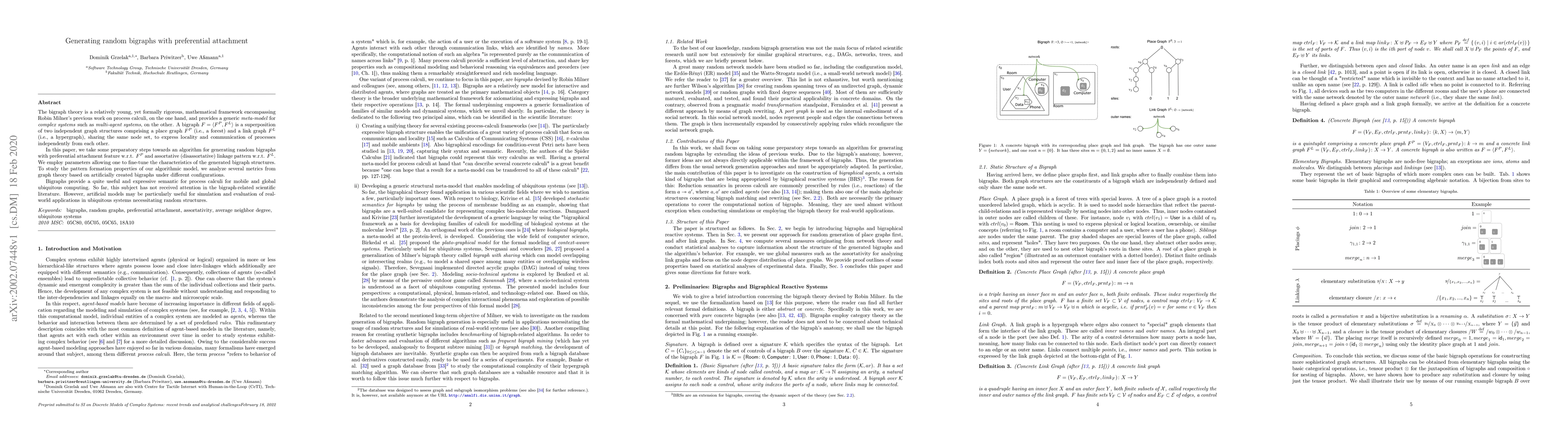 The bigraph theory is a relatively young, yet formally rigorous, mathematical framework encompassing Robin Milner's previous work on process calculi, on the one hand, and provides a generic meta-model for complex systems such as multi-agent systems, on the other. A bigraph $F = \langle F^P, F^L\rangle$ is a superposition of two independent graph structures comprising a place graph $F^P$ (i.e., a forest) and a link graph $F^L$ (i.e., a hypergraph), sharing the same node set, to express locality and communication of processes independently from each other. In this paper, we take some preparatory steps towards an algorithm for generating random bigraphs with preferential attachment feature w.r.t. $F^P$ and assortative (disassortative) linkage pattern w.r.t. $F^L$. We employ parameters allowing one to fine-tune the characteristics of the generated bigraph structures. To study the pattern formation properties of our algorithmic model, we analyze several metrics from graph theory based on artificially created bigraphs under different configurations. Bigraphs provide a quite useful and expressive semantic for process calculi for mobile and global ubiquitous computing. So far, this subject has not received attention in the bigraph-related scientific literature. However, artificial models may be particularly useful for simulation and evaluation of real-world applications in ubiquitous systems necessitating random structures.