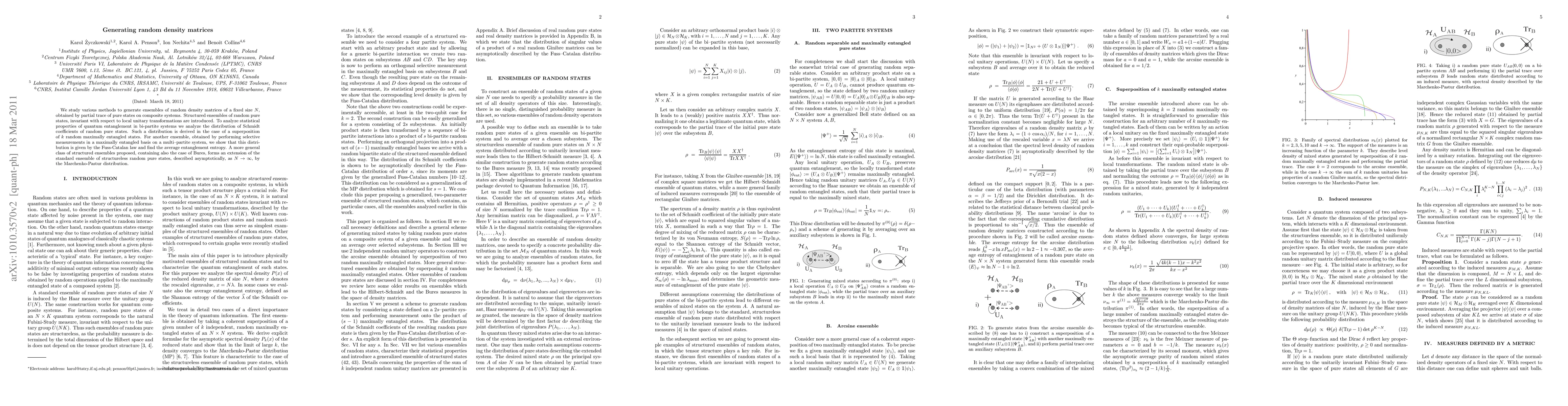 This paper explores methods to generate ensembles of random density matrices from pure states on composite quantum systems, focusing on statistical properties of quantum entanglement. It introduces structured ensembles invariant under local unitary transformations and analyzes the distribution of Schmidt coefficients, revealing connections to the Fuss-Catalan law and the Marchenko-Pastur distribution.