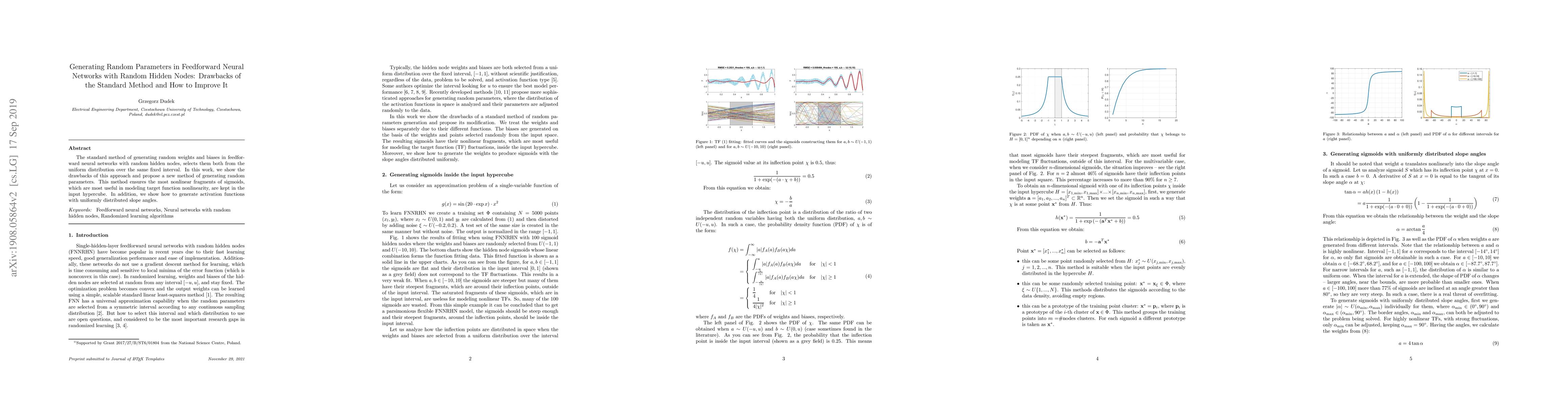 Summary: The paper critiques the conventional method of uniformly distributing random weights and biases in neural networks with random hidden nodes, highlighting its limitations. It proposes an improved method that better captures the nonlinear aspects of sigmoids and generates activation functions with uniformly distributed slope angles.