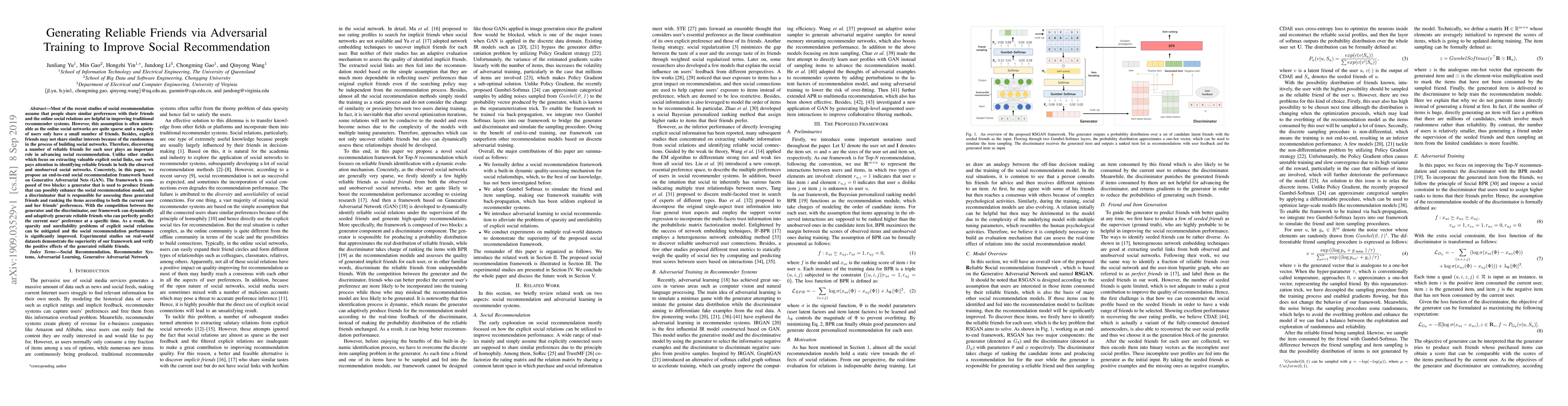 This paper proposes a social recommendation framework using Generative Adversarial Nets (GAN) to identify reliable friends, both observed and unobserved, to improve recommendation accuracy. The framework dynamically generates friends that enhance predictions, addressing the sparsity and unreliability issues in explicit social networks, and significantly boosts recommendation performance.