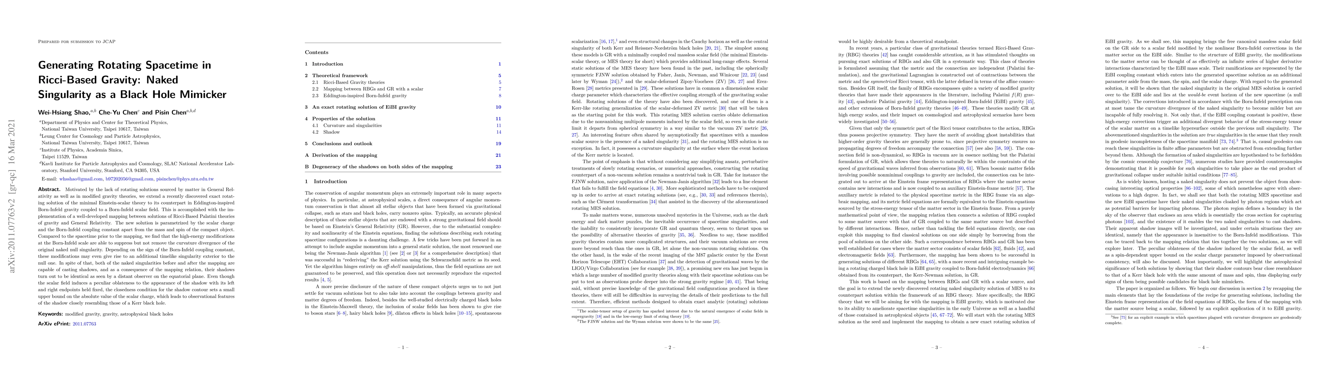 Motivated by the lack of rotating solutions sourced by matter in General Relativity as well as in modified gravity theories, we extend a recently discovered exact rotating solution of the minimal Einstein-scalar theory to its counterpart in Eddington-inspired Born-Infeld gravity coupled to a Born-Infeld scalar field. This is accomplished with the implementation of a well-developed mapping between solutions of Ricci-Based Palatini theories of gravity and General Relativity. The new solution is parametrized by the scalar charge and the Born-Infeld coupling constant apart from the mass and spin of the compact object. Compared to the spacetime prior to the mapping, we find that the high-energy modifications at the Born-Infeld scale are able to suppress but not remove the curvature divergence of the original naked null singularity. Depending on the sign of the Born-Infeld coupling constant, these modifications may even give rise to an additional timelike singularity exterior to the null one. In spite of that, both of the naked singularities before and after the mapping are capable of casting shadows, and as a consequence of the mapping relation, their shadows turn out to be identical as seen by a distant observer on the equatorial plane. Even though the scalar field induces a certain oblateness to the appearance of the shadow with its left and right endpoints held fixed, the closedness condition for the shadow contour sets a small upper bound on the absolute value of the scalar charge, which leads to observational features of the shadow closely resembling those of a Kerr black hole.