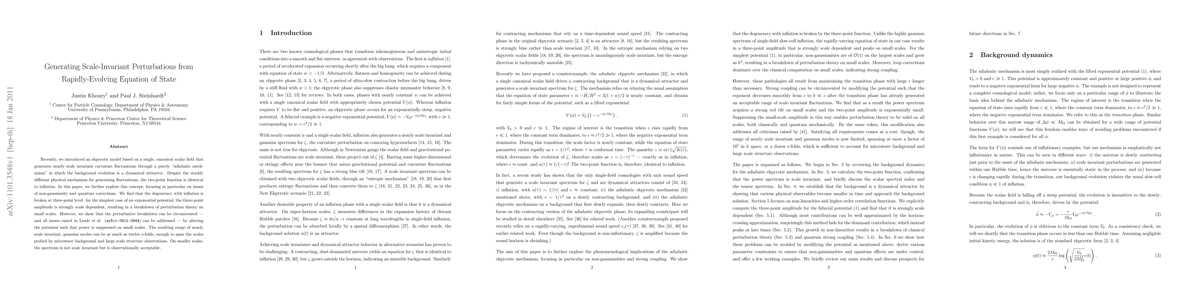 Recently, we introduced an ekpyrotic model based on a single, canonical scalar field that generates nearly scale invariant curvature fluctuations through a purely "adiabatic mechanism" in which the background evolution is a dynamical attractor. Despite the starkly different physical mechanism for generating fluctuations, the two-point function is identical to inflation. In this paper, we further explore this concept, focusing in particular on issues of non-gaussianity and quantum corrections. We find that the degeneracy with inflation is broken at three-point level: for the simplest case of an exponential potential, the three-point amplitude is strongly scale dependent, resulting in a breakdown of perturbation theory on small scales. However, we show that the perturbative breakdown can be circumvented -- and all issues raised in Linde et al. (arXiv:0912.0944) can be addressed -- by altering the potential such that power is suppressed on small scales. The resulting range of nearly scale invariant, gaussian modes can be as much as twelve e-folds, enough to span the scales probed by microwave background and large scale structure observations. On smaller scales, the spectrum is not scale invariant but is observationally acceptable.
