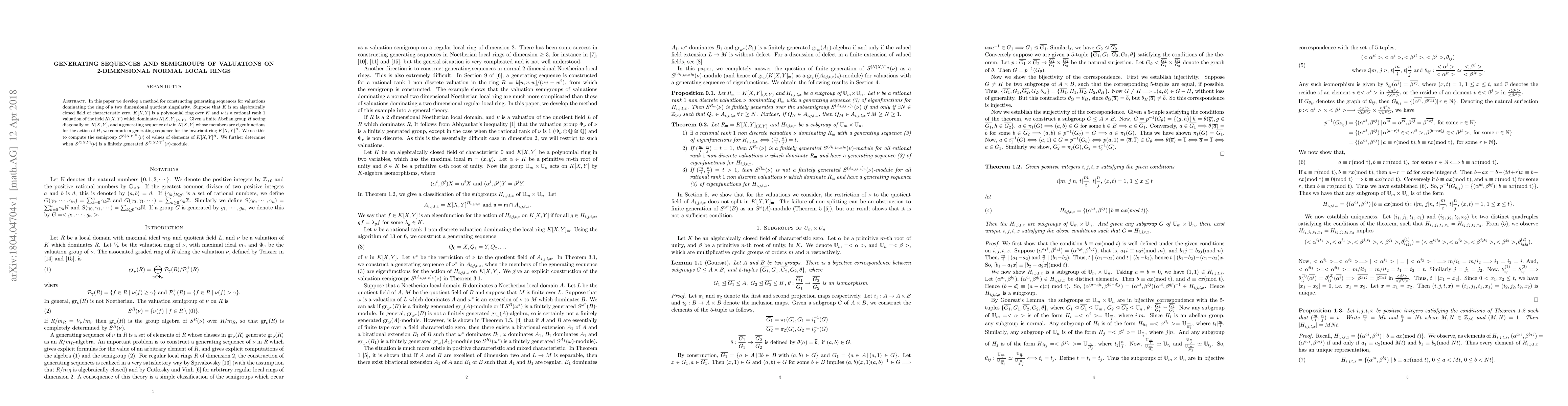 This paper presents a method for constructing generating sequences for valuations dominating a two-dimensional normal local ring. It focuses on determining the semigroup of values for the invariant ring under a finite Abelian group action and explores when the semigroup of values for the valuation is finitely generated.