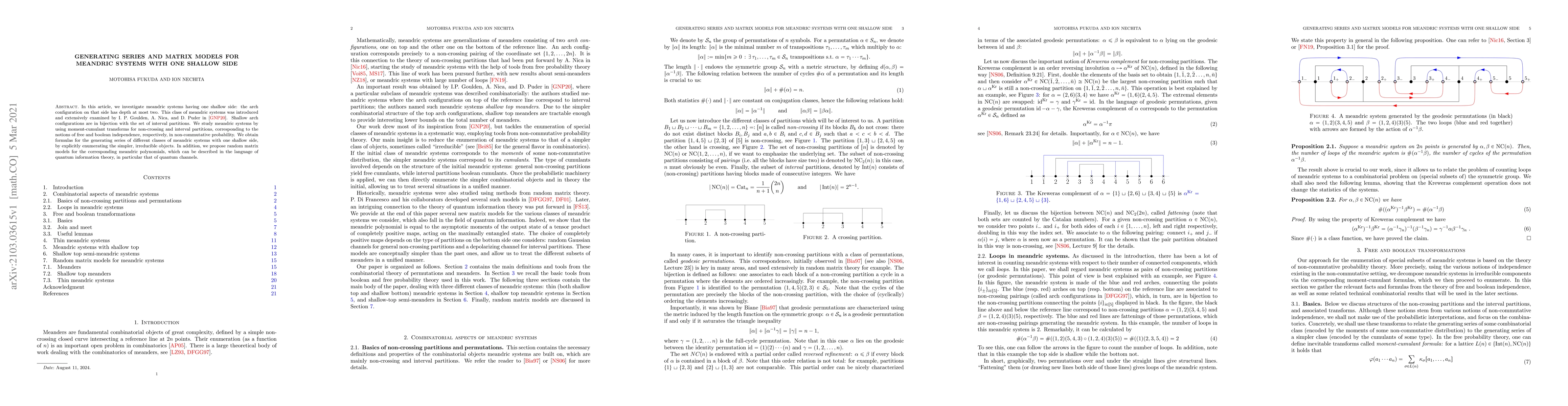 In this article, we investigate meandric systems having one shallow side: the arch configuration on that side has depth at most two. This class of meandric systems was introduced and extensively examined by I. P. Goulden, A. Nica, and D. Puder in 2020. Shallow arch configurations are in bijection with the set of interval partitions. We study meandric systems by using moment-cumulant transforms for non-crossing and interval partitions, corresponding to the notions of free and boolean independence, respectively, in non-commutative probability. We obtain formulas for the generating series of different classes of meandric systems with one shallow side, by explicitly enumerating the simpler, irreducible objects. In addition, we propose random matrix models for the corresponding meandric polynomials, which can be described in the language of quantum information theory, in particular that of quantum channels.