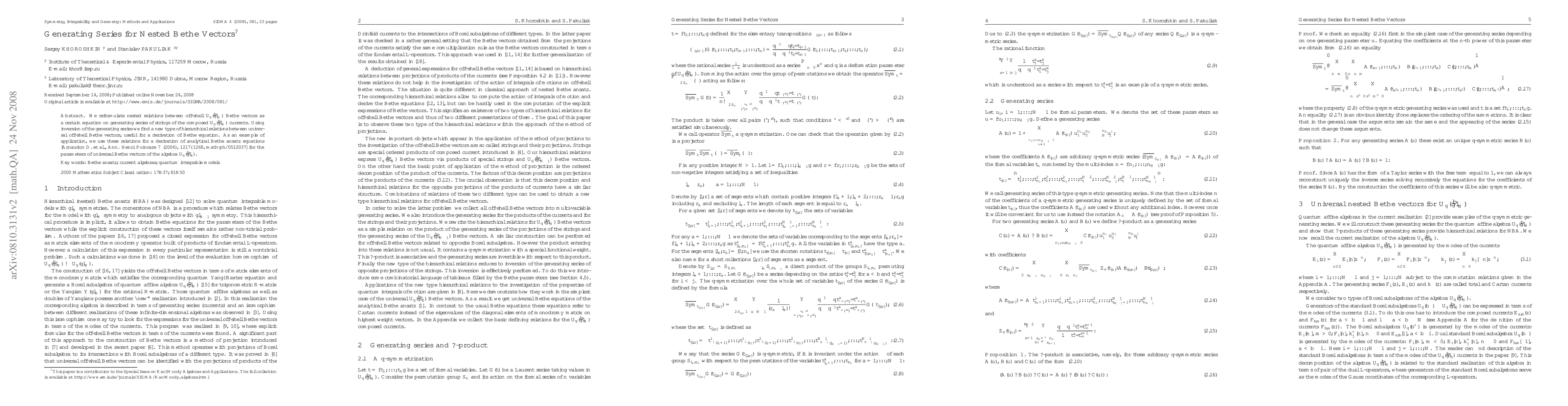 We reformulate nested relations between off-shell $U_q(\widehat{\mathfrak{gl}}_N)$ Bethe vectors as a certain equation on generating series of strings of the composed $U_q(\widehat{\mathfrak{gl}}_N)$ currents. Using inversion of the generating series we find a new type of hierarchical relations between universal off-shell Bethe vectors, useful for a derivation of Bethe equation. As an example of application, we use these relations for a derivation of analytical Bethe ansatz equations [Arnaudon D. et al., Ann. Henri Poincar\'e 7 (2006), 1217-1268, math-ph/0512037] for the parameters of universal Bethe vectors of the algebra $U_q(\widehat{\mathfrak{gl}}_2)$.
