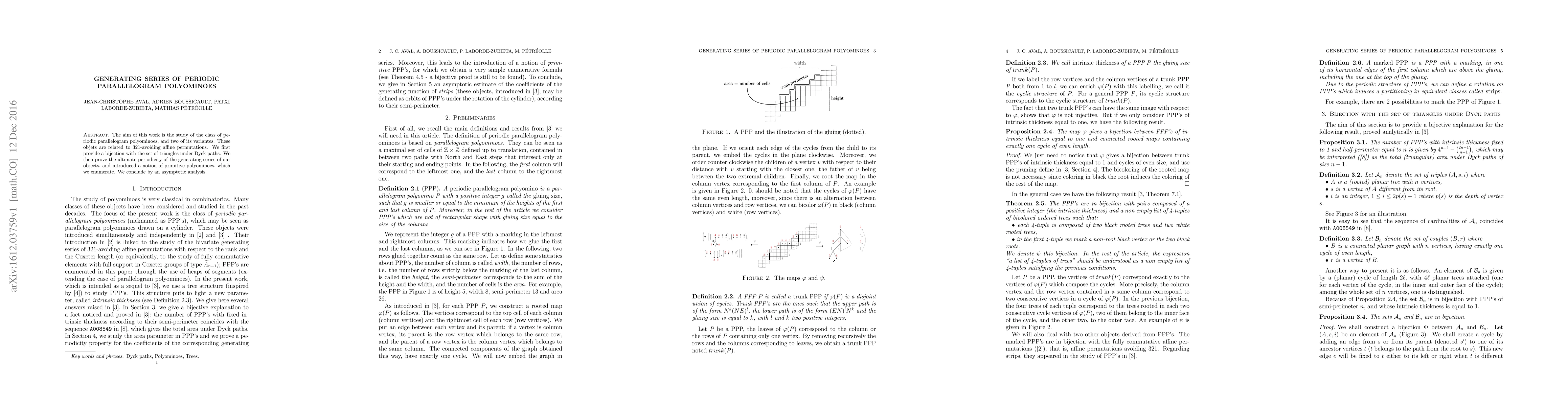 This paper studies periodic parallelogram polyominoes and their variants, relating them to 321-avoiding affine permutations. It establishes a bijection with triangles under Dyck paths, proves the periodicity of their generating series, introduces primitive polyominoes, and concludes with an asymptotic analysis.
