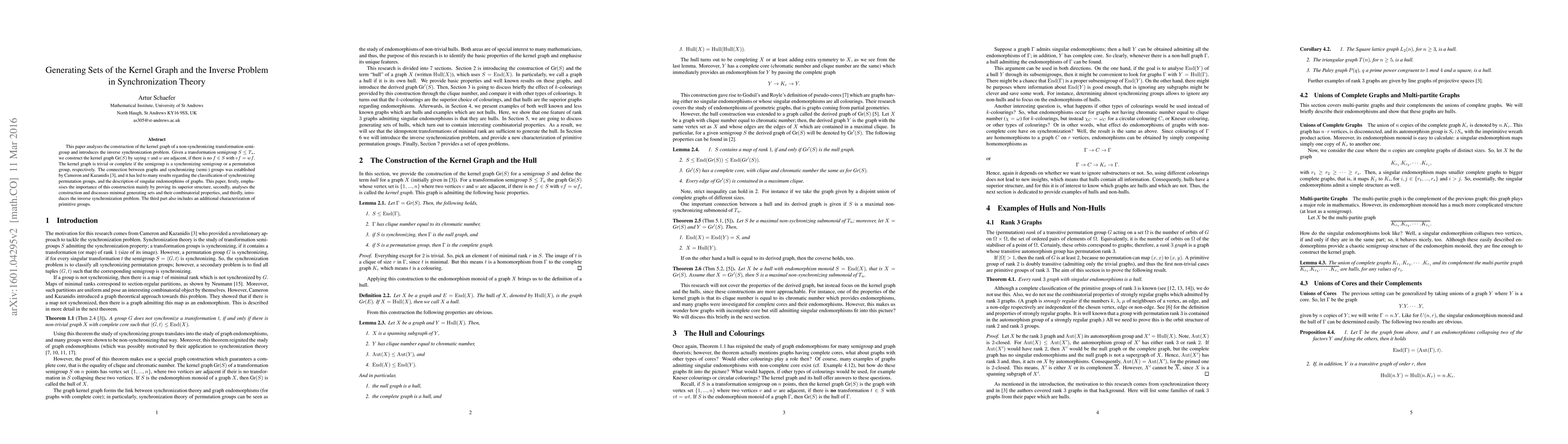 This paper constructs the kernel graph of a non-synchronizing transformation semigroup and explores its structural properties, emphasizing its importance in synchronization theory. It also introduces the inverse synchronization problem and discusses minimal generating sets of these semigroups.
