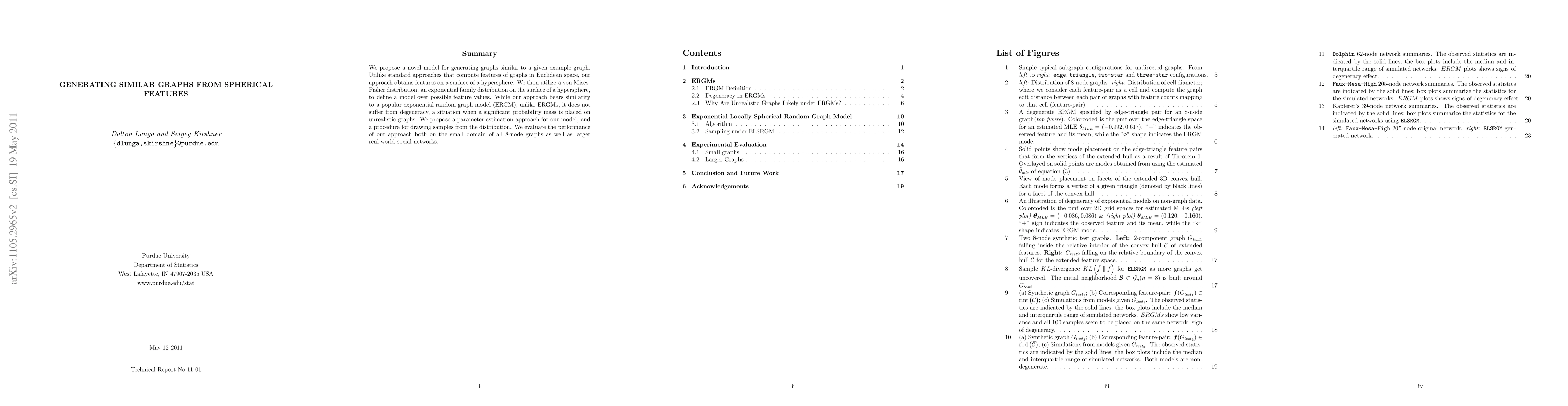 We propose a novel model for generating graphs similar to a given example graph. Unlike standard approaches that compute features of graphs in Euclidean space, our approach obtains features on a surface of a hypersphere. We then utilize a von Mises-Fisher distribution, an exponential family distribution on the surface of a hypersphere, to define a model over possible feature values. While our approach bears similarity to a popular exponential random graph model (ERGM), unlike ERGMs, it does not suffer from degeneracy, a situation when a significant probability mass is placed on unrealistic graphs. We propose a parameter estimation approach for our model, and a procedure for drawing samples from the distribution. We evaluate the performance of our approach both on the small domain of all 8-node graphs as well as larger real-world social networks.