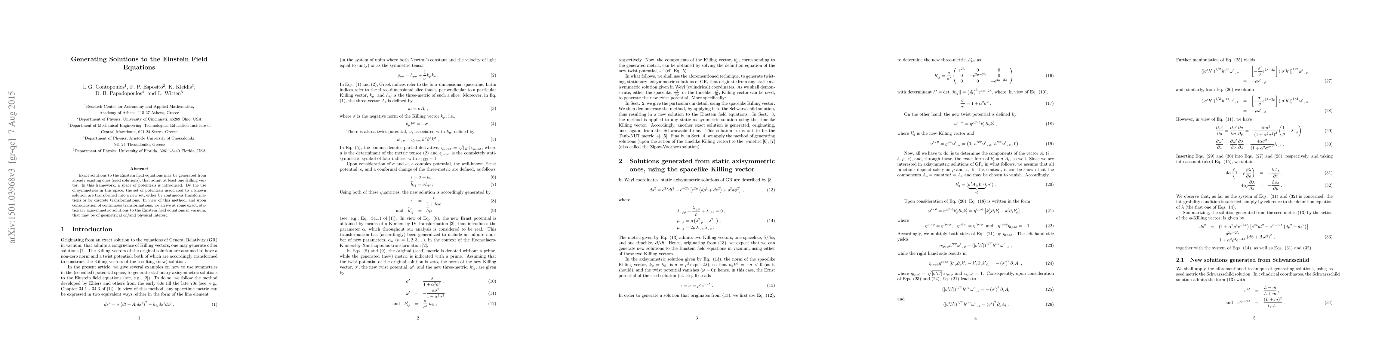 Researchers developed a method to generate new solutions to Einstein's field equations using existing ones, resulting in exact, stationary axisymmetric solutions of interest for geometry and physics.