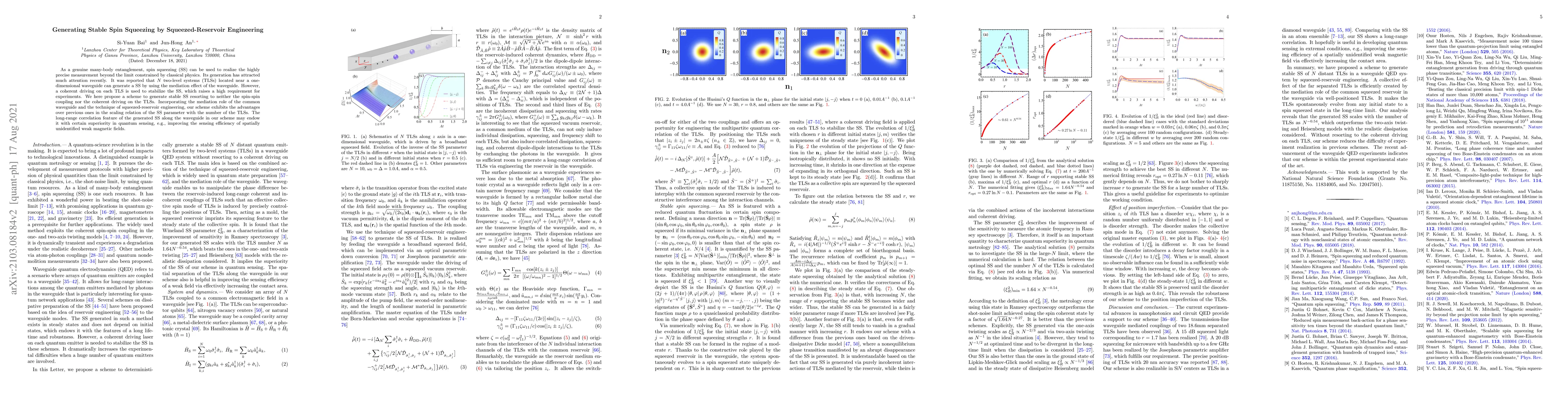 This paper proposes a novel scheme to generate stable spin squeezing without relying on spin-spin coupling or coherent driving, utilizing squeezed-reservoir engineering and a common waveguide. This method offers advantages in scalability and long-range correlation, potentially enhancing quantum sensing efficiency for weak magnetic fields.