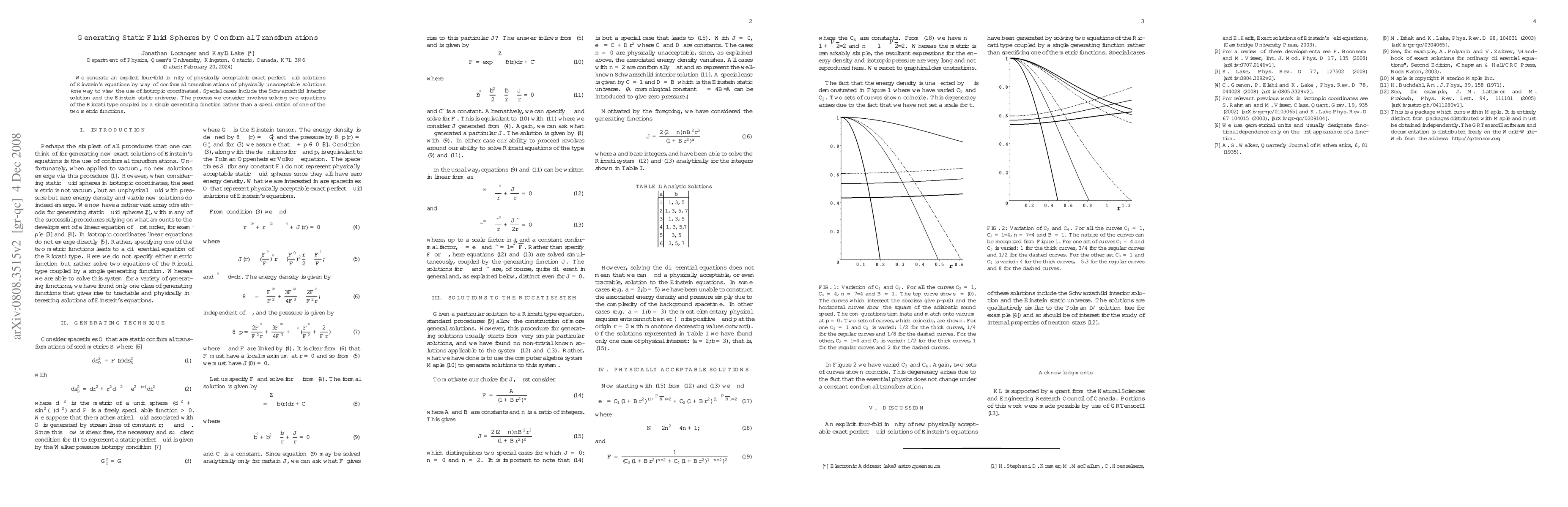 We generate an explicit four-fold infinity of physically acceptable exact perfect fluid solutions of Einstein's equations by way of conformal transformations of physically unacceptable solutions (one way to view the use of isotropic coordinates). Special cases include the Schwarzschild interior solution and the Einstein static universe. The process we consider involves solving two equations of the Riccati type coupled by a single generating function rather than a specification of one of the two metric functions.
