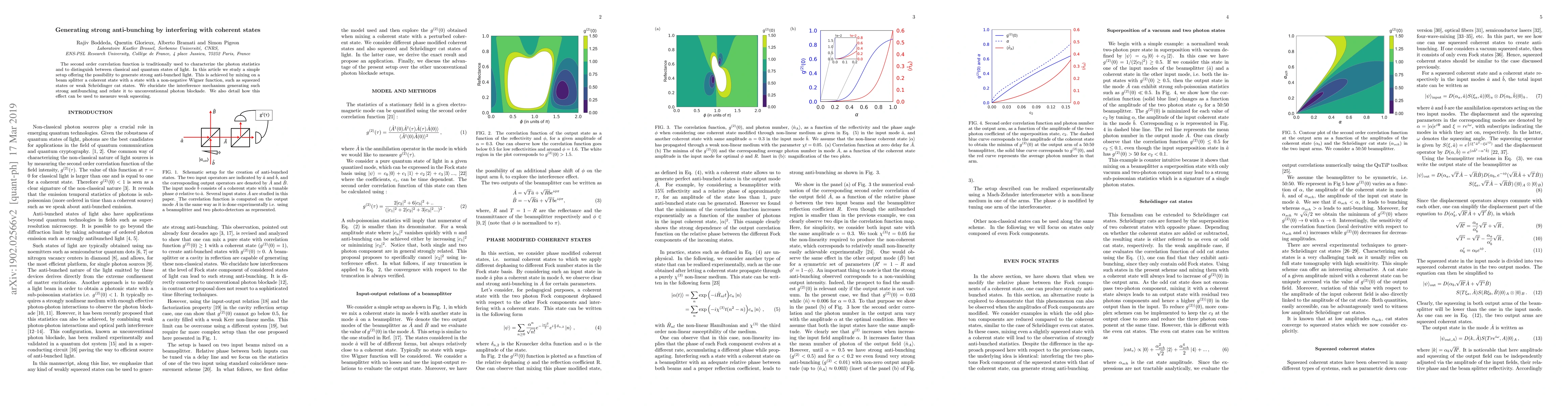 The second order correlation function is traditionally used to characterize the photon statistics and to distinguish between classical and quantum states of light. In this article we study a simple setup offering the possibility to generate strong anti-bunched light. This is achieved by mixing on a beam splitter a coherent state with a state with a non-negative Wigner function, such as squeezed states or weak Schr\"odinger cat states. We elucidate the interference mechanism generating such strong antibunching and relate it to unconventionnal photon blockade. We also detail how this effect can be used to measure weak squeezing.