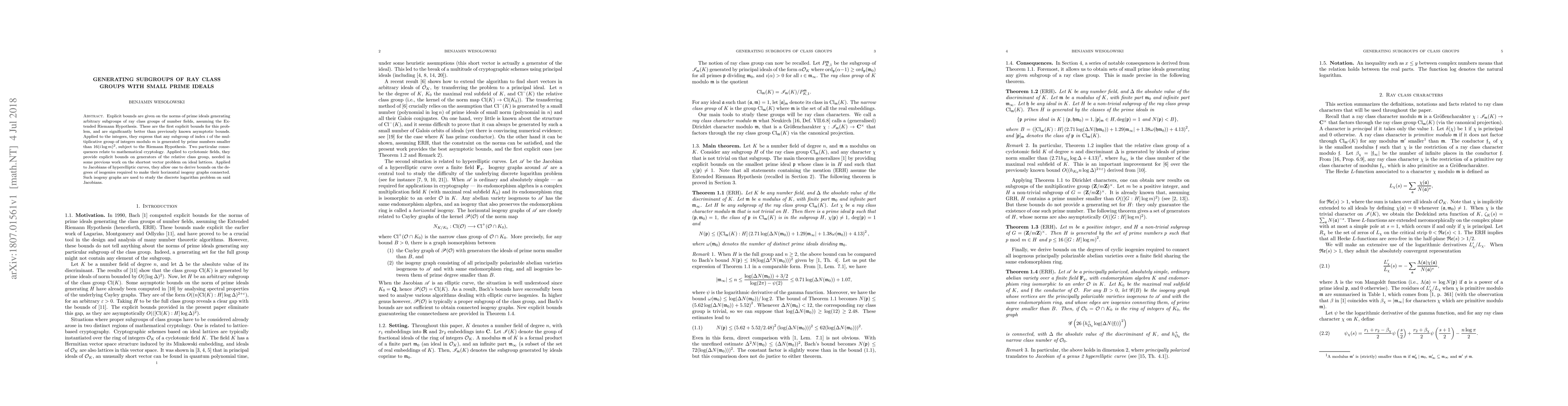 Explicit bounds are given on the norms of prime ideals generating arbitrary subgroups of ray class groups of number fields, assuming the Extended Riemann Hypothesis. These are the first explicit bounds for this problem, and are significantly better than previously known asymptotic bounds. Applied to the integers, they express that any subgroup of index $i$ of the multiplicative group of integers modulo $m$ is generated by prime numbers smaller than $16(i\log m)^2$, subject to the Riemann Hypothesis. Two particular consequences relate to mathematical cryptology. Applied to cyclotomic fields, they provide explicit bounds on generators of the relative class group, needed in some previous work on the shortest vector problem on ideal lattices. Applied to Jacobians of hyperelliptic curves, they allow one to derive bounds on the degrees of isogenies required to make their horizontal isogeny graphs connected. Such isogeny graphs are used to study the discrete logarithm problem on said Jacobians.
