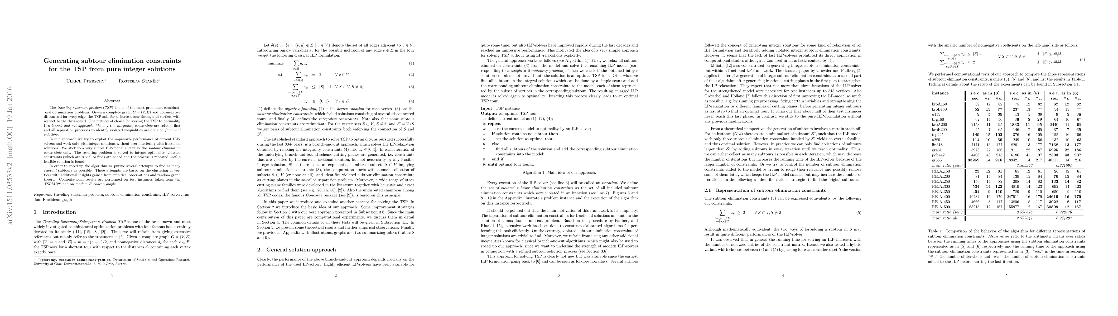 This paper proposes a novel branch and cut method for solving the TSP using only integer solutions, avoiding fractional solutions. It focuses on generating subtour elimination constraints directly from pure integer solutions, leveraging clustering techniques and empirical observations to enhance efficiency.