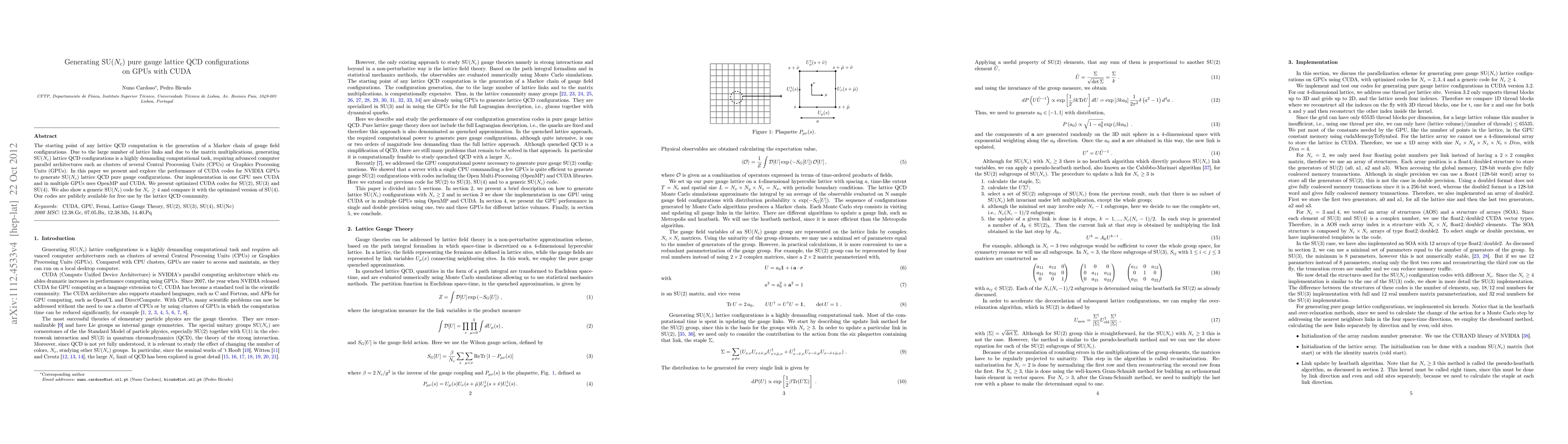 This paper presents optimized CUDA codes for generating SU(Nc) pure gauge configurations in lattice QCD using GPUs, focusing on SU(2), SU(3), and SU(4) implementations. It also introduces a generic SU(Nc) code for Nc ≥ 4 and compares its performance with the optimized SU(4) version.