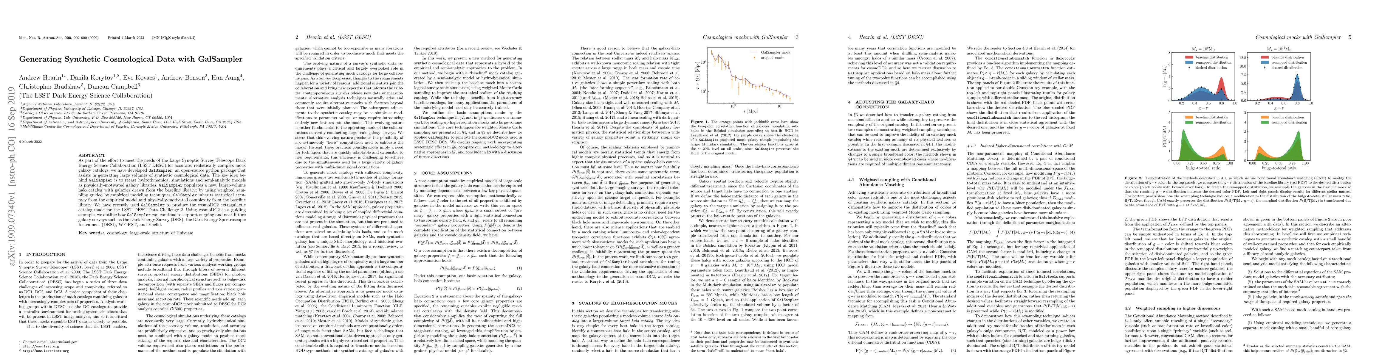 GalSampler is an open-source Python tool developed to generate synthetic cosmological data for galaxy surveys, recasting hydrodynamical simulations and semi-analytic models into galaxy libraries. It supports the Large Synoptic Survey Telescope's Dark Energy Science Collaboration by creating accurate, complex mock galaxy catalogs.