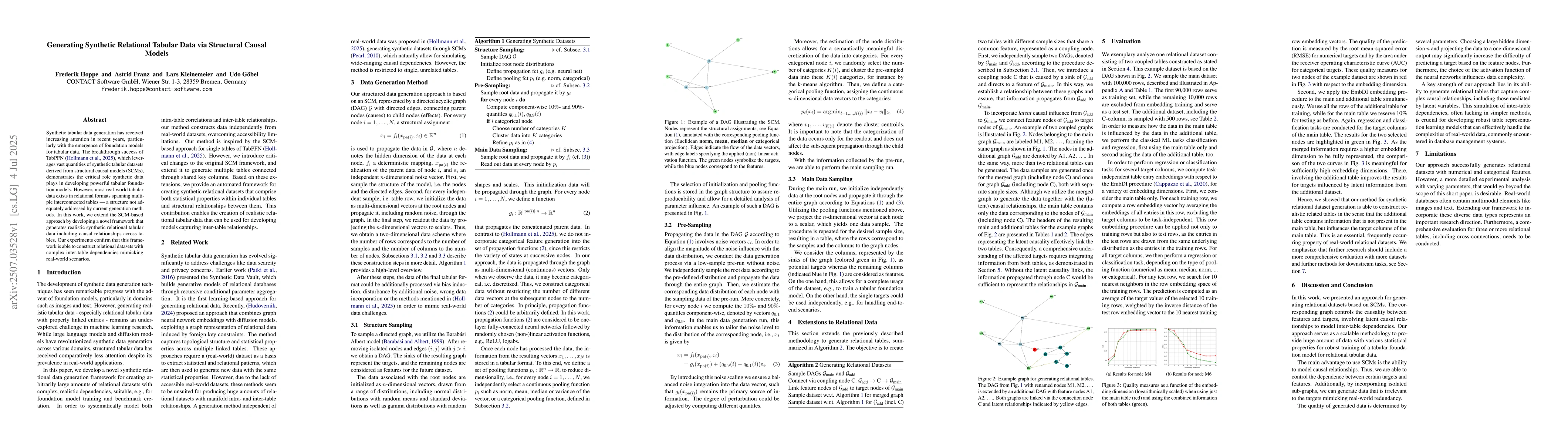 The paper presents a novel framework for generating synthetic relational tabular data using Structural Causal Models (SCMs), extending the SCM-based approach to handle multiple interconnected tables with complex causal dependencies.