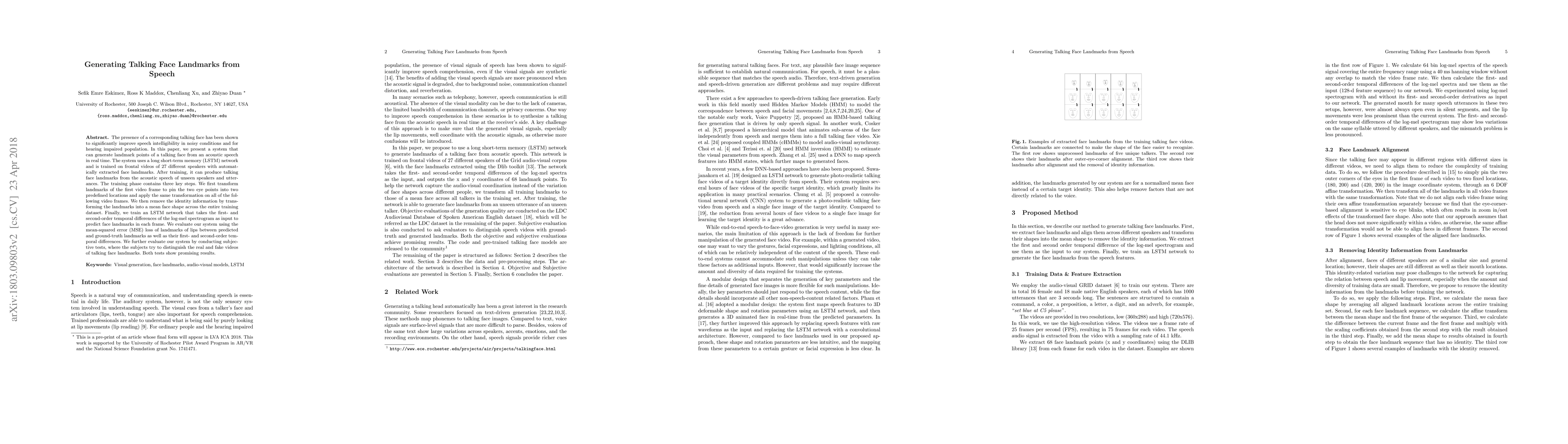 This paper presents a real-time system using an LSTM network to generate talking face landmarks from speech, trained on frontal videos of 27 speakers. The system shows promising results in both objective and subjective evaluations, indicating its potential to improve speech intelligibility in noisy conditions.