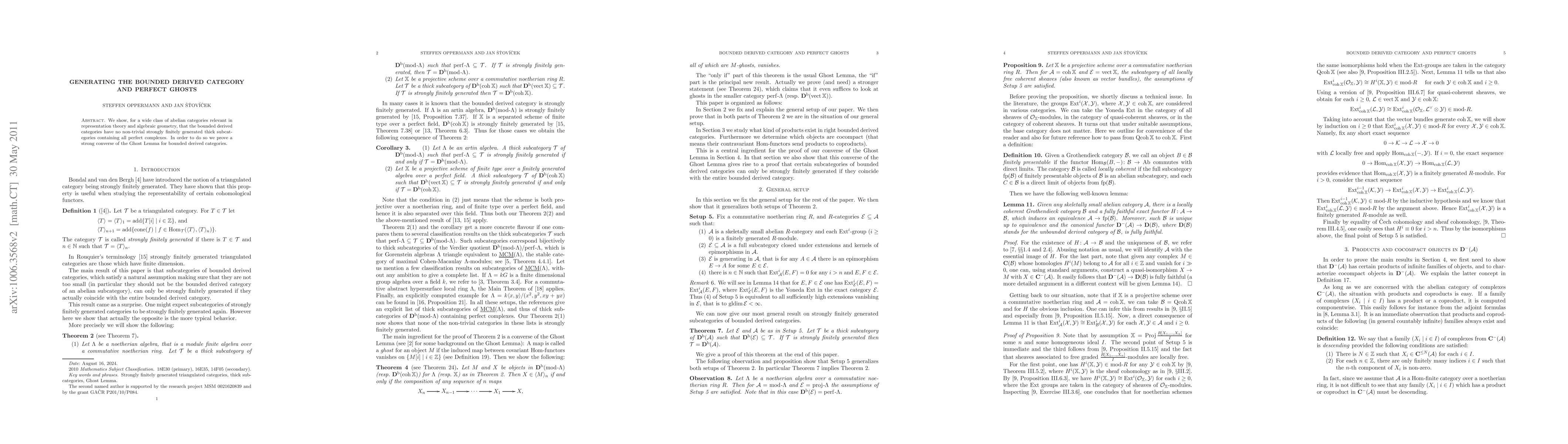 We show, for a wide class of abelian categories relevant in representation theory and algebraic geometry, that the bounded derived categories have no non-trivial strongly finitely generated thick subcategories containing all perfect complexes. In order to do so we prove a strong converse of the Ghost Lemma for bounded derived categories.