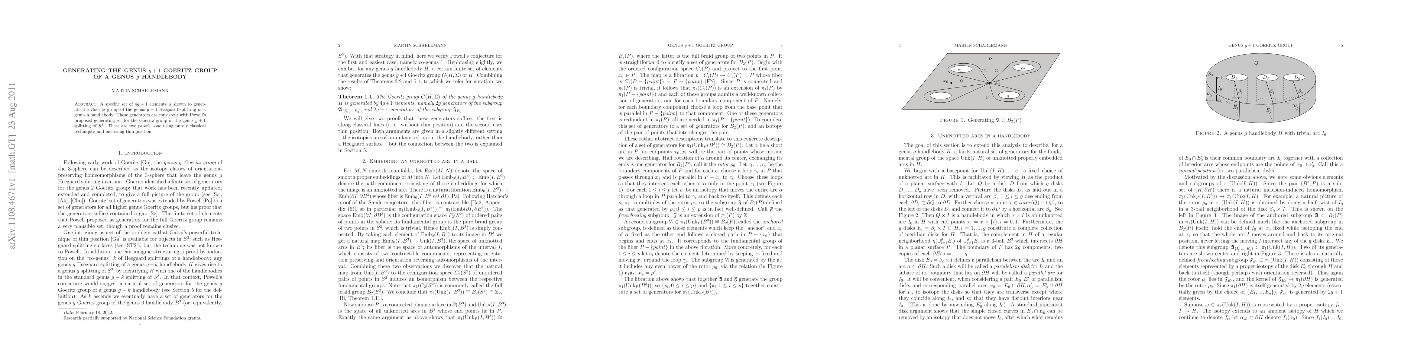 This paper presents a specific set of 4g+1 elements that generate the Goeritz group for the genus g+1 Heegaard splitting of a genus g handlebody, aligning with Powell's proposed set for S^3. It provides two proofs, one classical and one utilizing thin position theory.