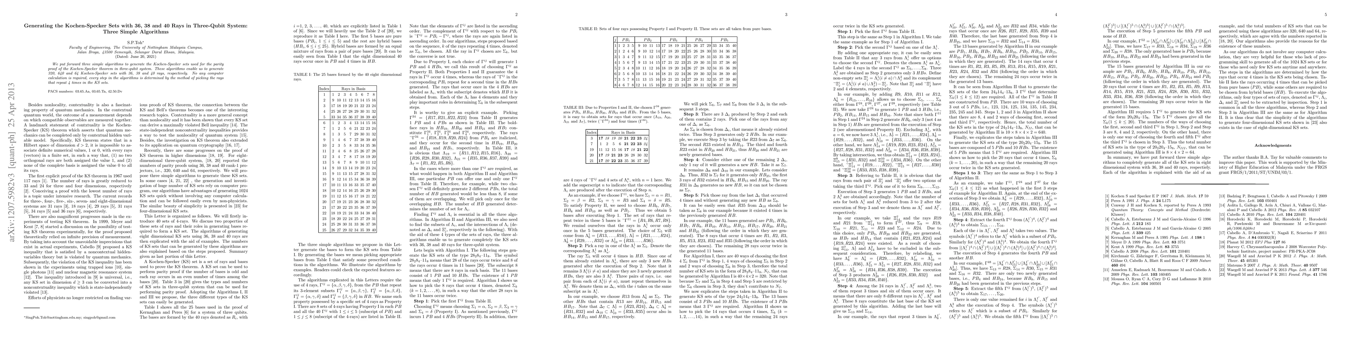 Researchers developed three simple algorithms to generate Kochen-Specker sets for a three-qubit system with 36, 38, and 40 rays, enabling the proof of the Kochen-Specker theorem without computer calculations.