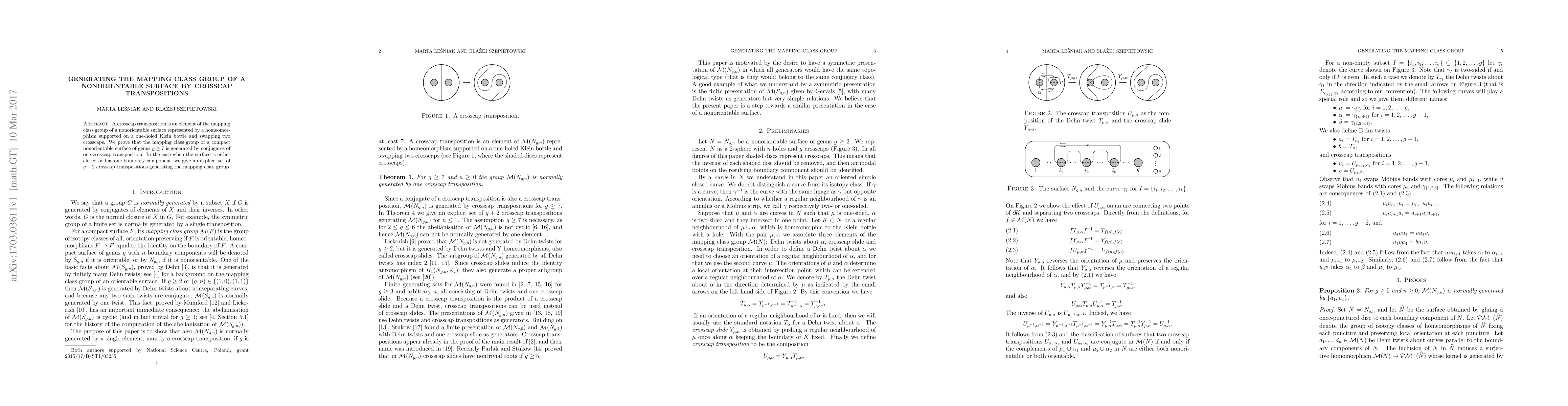 A crosscap transposition is an element of the mapping class group of a nonorientable surface represented by a homeomorphism supported on a one-holed Klein bottle and swapping two crosscaps. We prove that the mapping class group of a compact nonorientable surface of genus $g\ge 7$ is generated by conjugates of one crosscap transposition. In the case when the surface is either closed or has one boundary component, we give an explicit set of $g+2$ crosscap transpositions generating the mapping class group.